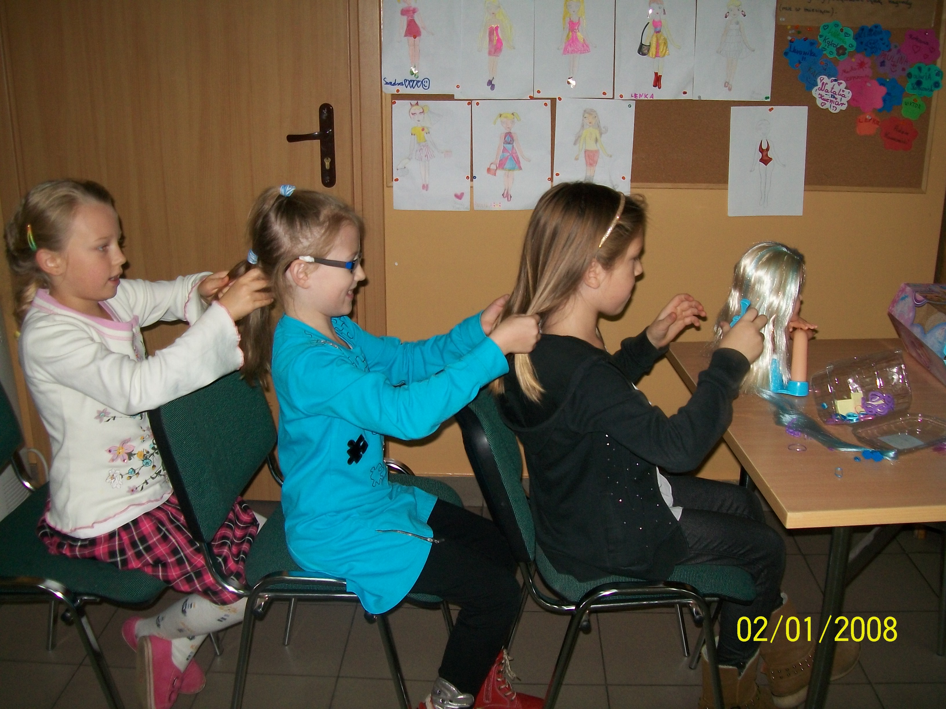W październiku w naszej świetlicy w Łapinie poznaliśmy kolejne nowe zawody – fryzjera i projektanta mody. W ramach poznawania zawodu fryzjera ćwiczyliśmy w sposób praktyczny robienie różnych fryzur na lalce, na sobie oraz dodatkowo zaplatanie warkocza na linkach. Najładniejszy warkocz zrobił chłopiec! Dodatkowo poszerzyliśmy to umiejętności pracy kosmetyczki. Uczyliśmy się przyklejać i zdobić paznokcie oraz włosy.