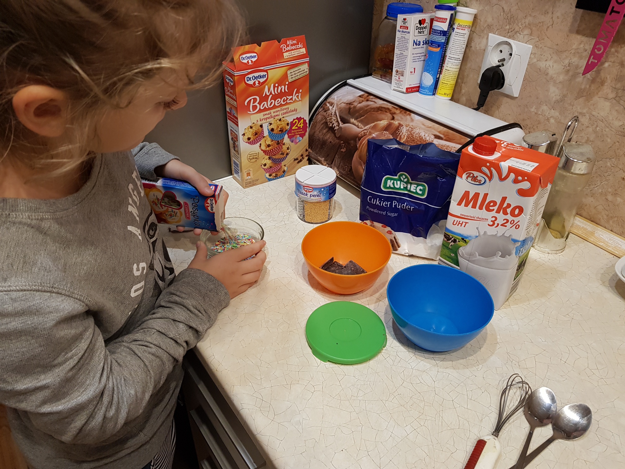 W związku z pandemią w naszych świetlicach żukowskich – podobnie jak w innych palcówkach – od listopada przeszliśmy na pracę zdalną. To dla nas nowość i szukamy różnych pomysłów na zaangażowanie dzieci w działanie. Pani Zuzanna ze świetlicy w Tuchomiu zaprosiła ostatnio swoich uczestników do pieczenia babeczek. Maluchy – bo to dzieci w wieku 6-9 lat – z ogromnym zapałem podeszły to działania i jak widać na zdjęciach przyniosło im to mnóstwo radości. Ale nie było to zwykłe pieczenie babeczek. Podczas wykonania zadania dzieci mogły przenieść się się „do magicznej krainy baśni i bajek” wykorzystując swoją wyobraźnię. Produkty do przygotowania babeczek wraz z instrukcją wykonania uczestnicy otrzymali w paczkach z żywnością przygotowanych przez wychowawcę.
