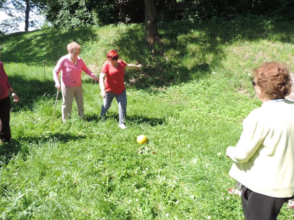 Dzięki sile argumentów naszego fizjoterapeuty, seniorzy coraz częściej decydują się na aktywność fizyczną. Dziś spacer połączony był z grą w piłkę nożną, bule i rzucaniem w kółku. Kilka piłek, a tyle radości:)