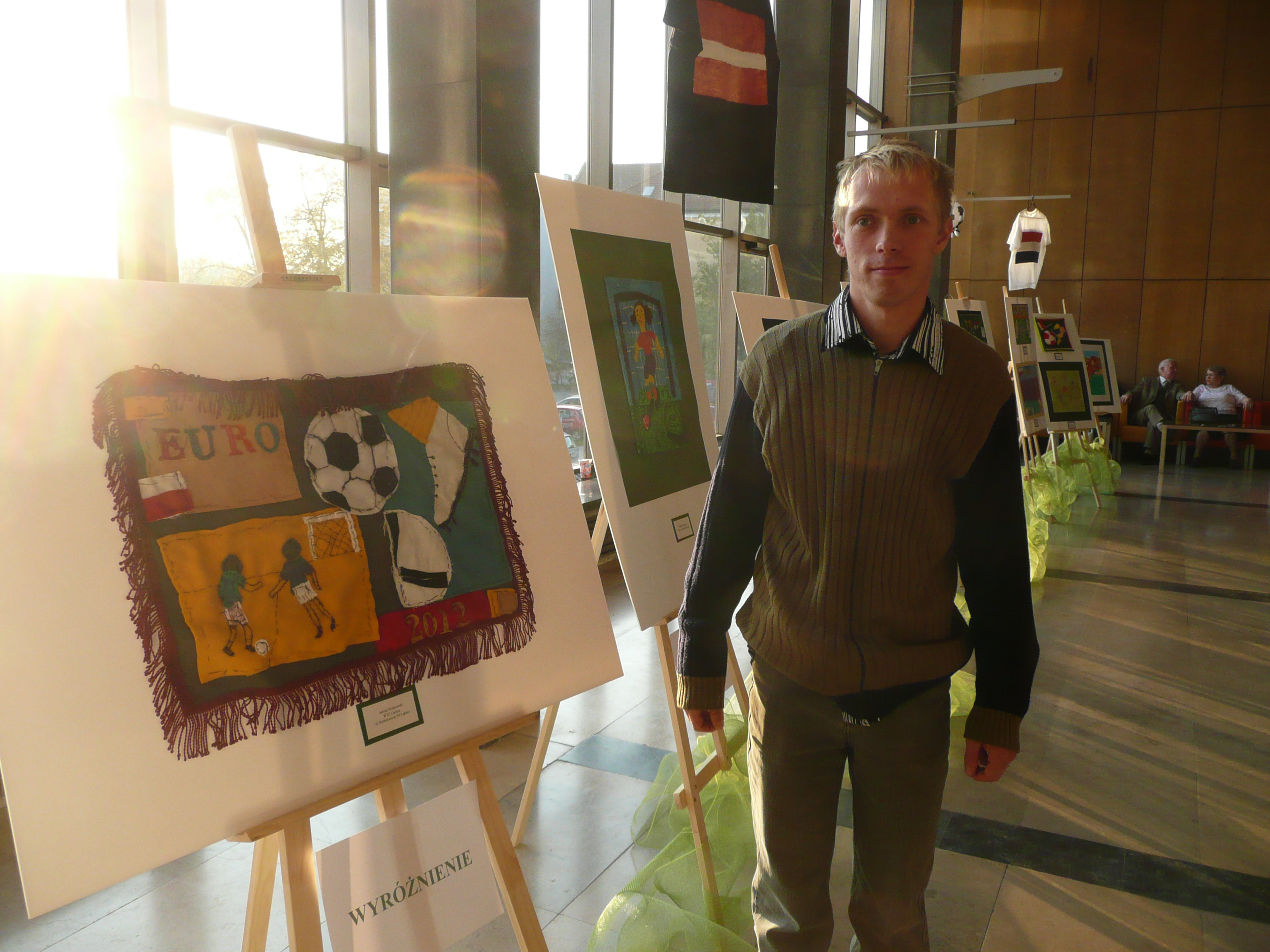 Uczestnicy i pracownicy Warsztatu Terapii Zajęciowej w Łapinie gratulują Panu Adrianowi-uczestnikowi w/w warsztatu, za otrzymane wyróżnienie pracy plastycznej, podczas IX Festiwalu „pozapozy”. Organizatorem Festiwalu był Miejski Ośrodek Pomocy Społecznej w Gdańsku. Tematem tegorocznego konkursu plastycznego IX Festiwalu „pozapozy” było „Euro 2012″. Festiwal służy społecznej aktywizacji i integracji osób zagrożonych wykluczeniem społecznym, promuje działania twórców w sposób równoprawny, bez względu na ich kondycję fizyczną i intelektualną. Nagrodzone prace można podziwiać w Teatrze Wybrzeża.