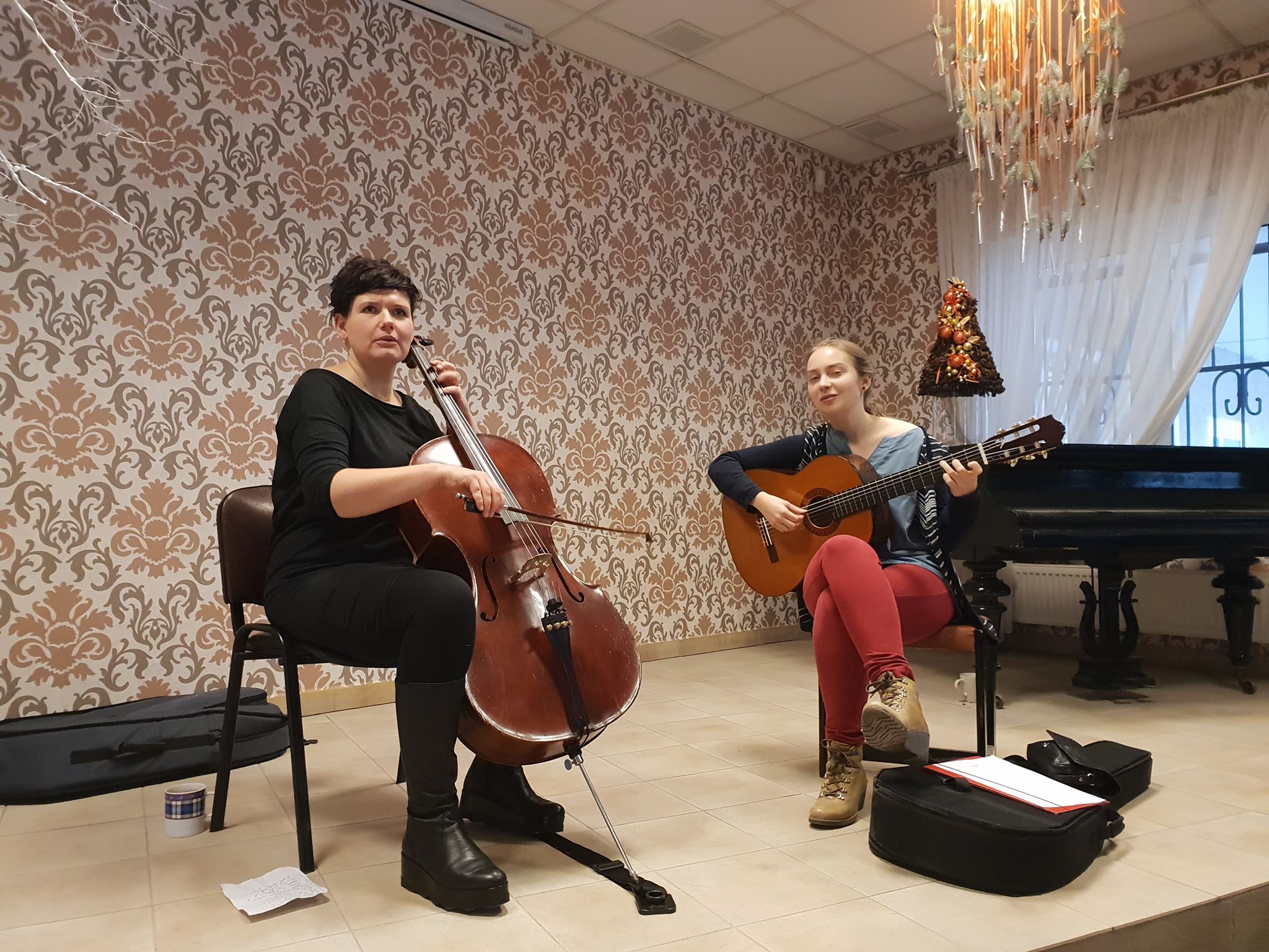 Grudniowy koncert kolęd w wykonaniu Pani Agnieszki Kaszuba (wiolonczela) i Zuzanny Wężyk (gitara), to zdecydowanie zgrany duet, choć Panie zagrały ze sobą po raz pierwszy!