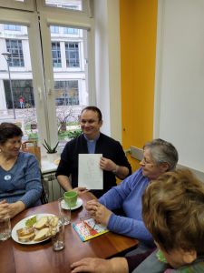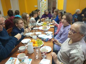 Z okazji wczorajszego Międzynarodowego Dnia osób starszych, mieliśmy wyjątkowych gości. Odwiedzili nas uczniowie kl. 8b ze Szkoły Podstawowej nr 45 w Gdańsku, prężnie działający jako wolontariusze wraz z P. Wandą Wrzosek, opiekunem wolontariatu oraz wychowawczynią, P. Joanna Kłódką. Pretekstem do spotkania było wspólne picie herbaty, którą obdarowała nas młodzież. Tematów do rozmowy nie zabrakło, mimo różnicy wieku liczonej w dekadach Również nasze Centrum Wolontariatu, którego członkowie zainicjowali to spotkanie, sprawiło seniorom niespodziankę, Agnieszka, Nicola i Ks. Andrzej wpadli do nas na herbatę i każdego seniora obdarowali, nie czym innym jak paczuszkami z herbatą