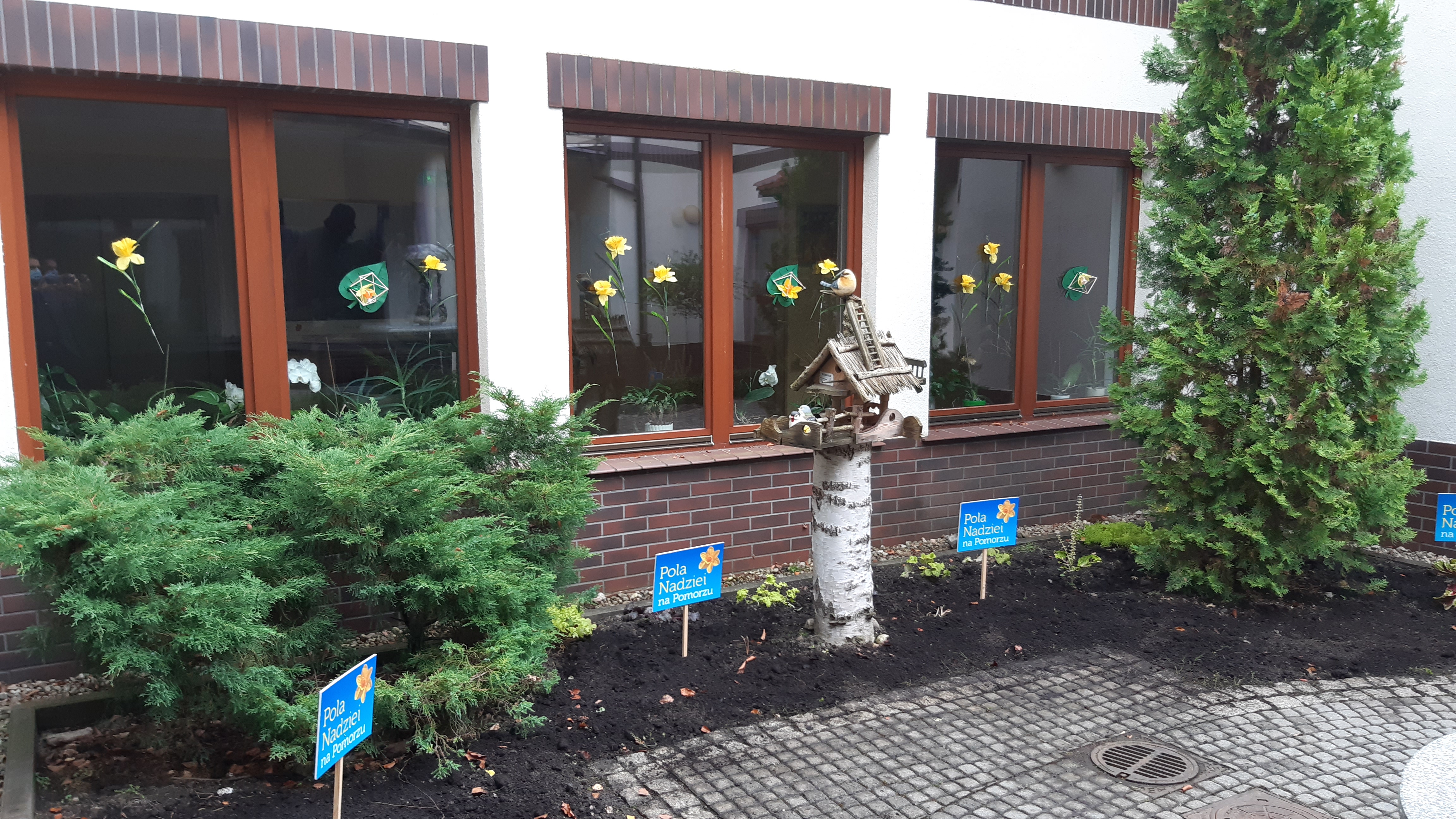 A na zdjęciach zobaczyć można już dekoracje żonkilowe, zapowiadające sadzenie cebulek na naszym hospicyjnym patio.