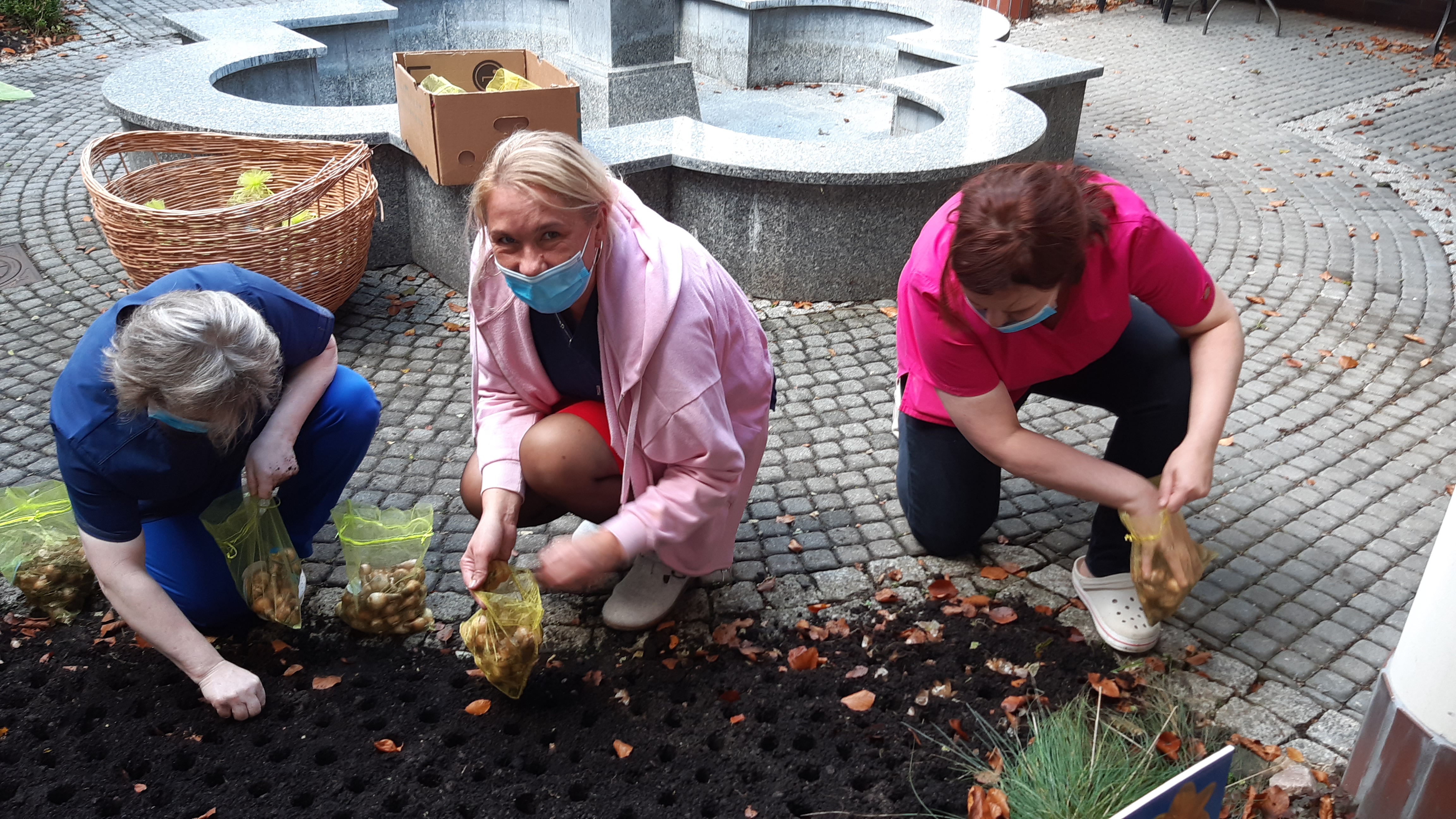 Dzisiaj w Naszym Domu Hospicyjnym zostały posadzone cebulki żonkili szczególnymi dłońmi