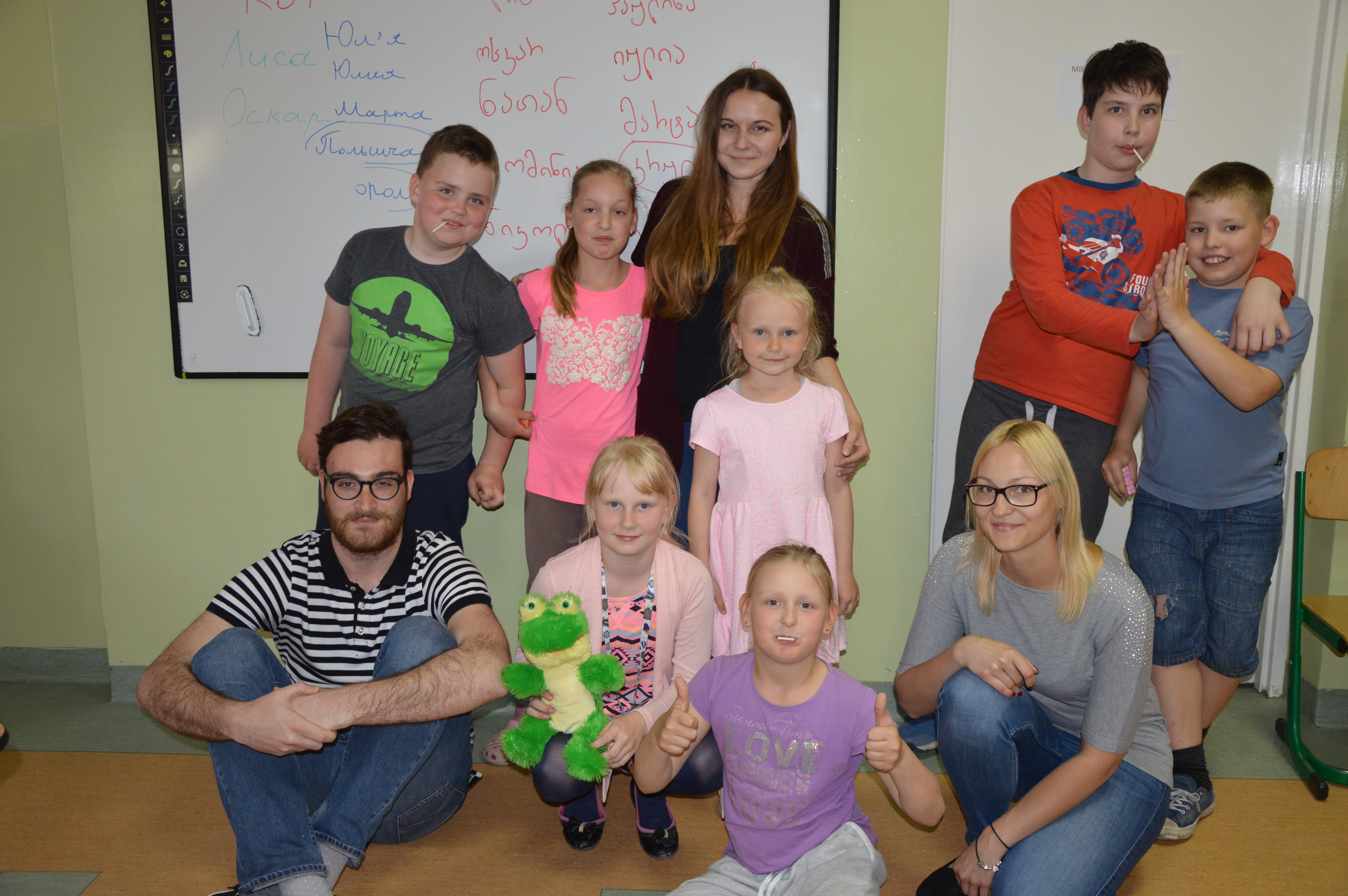 Dzisiaj w naszej świetlicy w Borkowie gościliśmy wolontariuszy EVS – Irinę z Białorusi i Dato – czyli Dawida – z Gruzji. Oboje od jesieni pomagają w Caritas Archideicezji Gdańskiej pracując z osobami starszymi i niepełnosprawnymi. Przygotowali dla nas krótkie prezentacje o swoich krajach. Mogliśmy też zobaczyć jak wygląda białoruski i gruziński alfabet. Każdy kto chciał nauczył się zapisywać swoje imię w tych językach. No a potem był czas na wspólną zabawę.