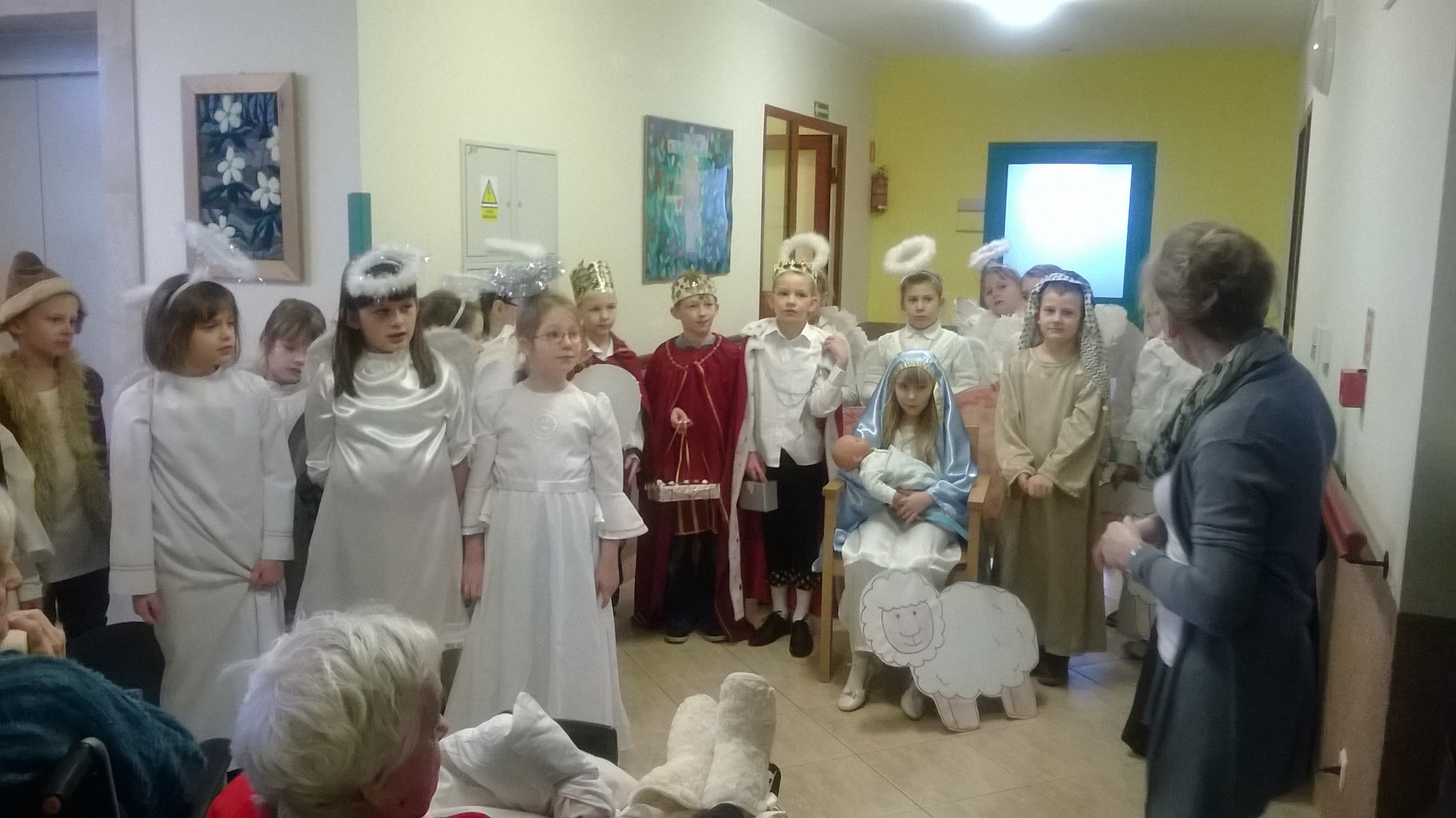 14 stycznia odwiedzili nas uczniowie gdyńskiej SP nr 40 z jasełkowym przedstawieniem. Dzieci przedstawiły autorską wizję bożonarodzeniowej tradycji, z udziałem Św. Franciszka i zastępu aniołów. Wszystkie teksty były oczywiście rymowane, okraszone pięknie zaśpiewanymi kolędami. Jedna z nich była nawet po włosku!