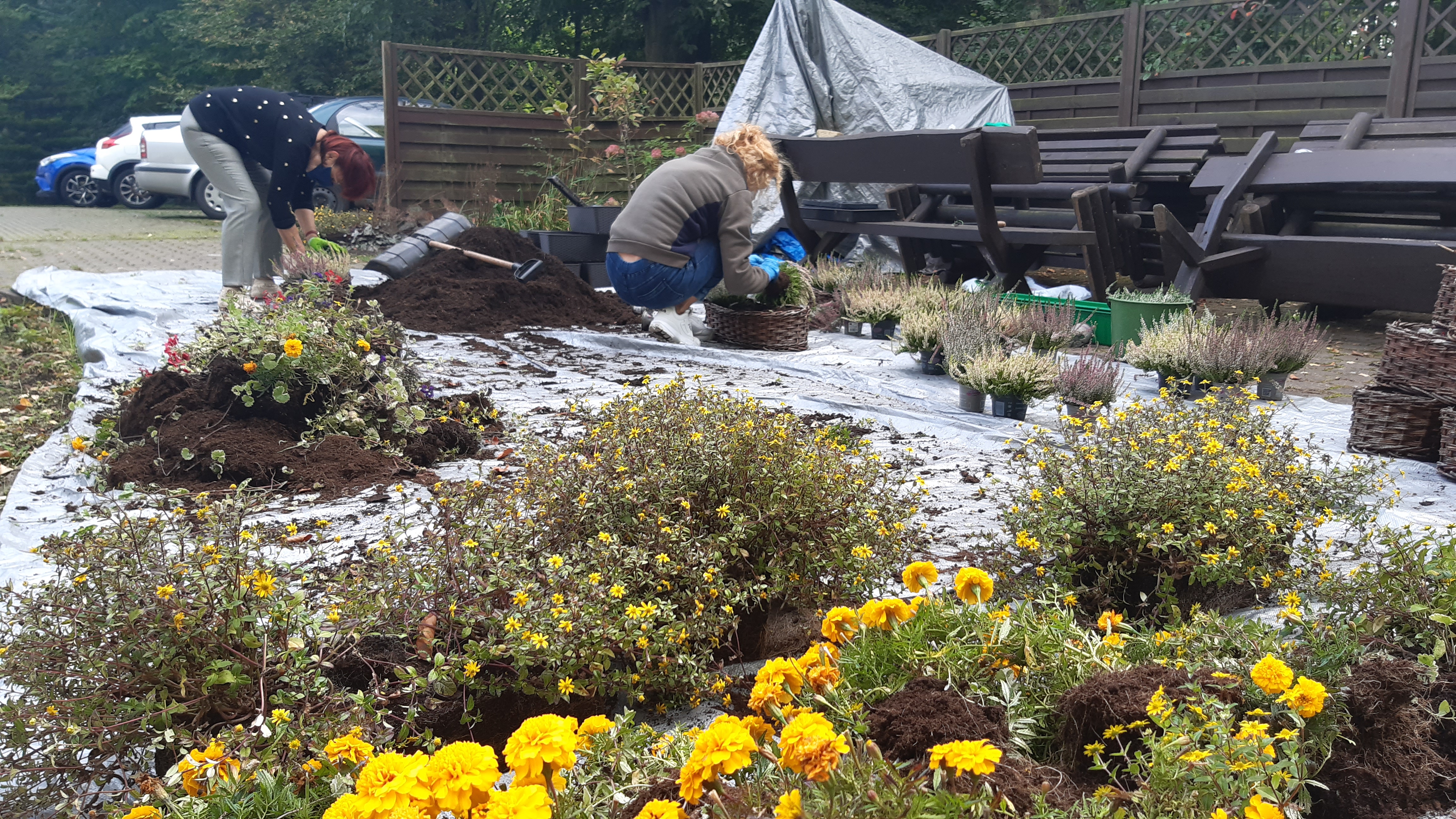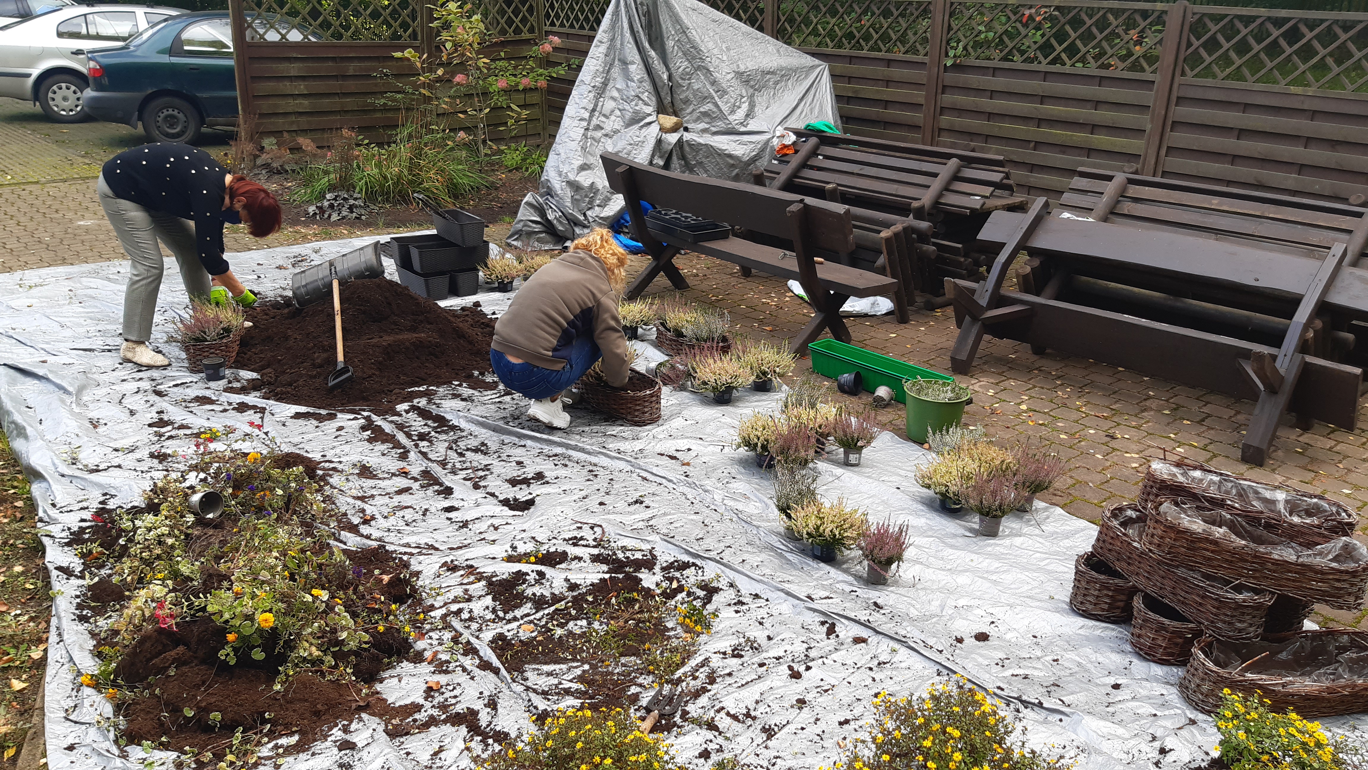 Nasze Wolontariuszki Maria i Barbara dzielnie dokonały zmiany wystroju frontu naszego hospicjum. W wiklinowych korytkach pojawiły się kolorowe wrzosy. Cieszą one również podopiecznych na naszym wewnętrznym tarasie za do są wielce wdzięczni. DZIĘKUJEMY!!!