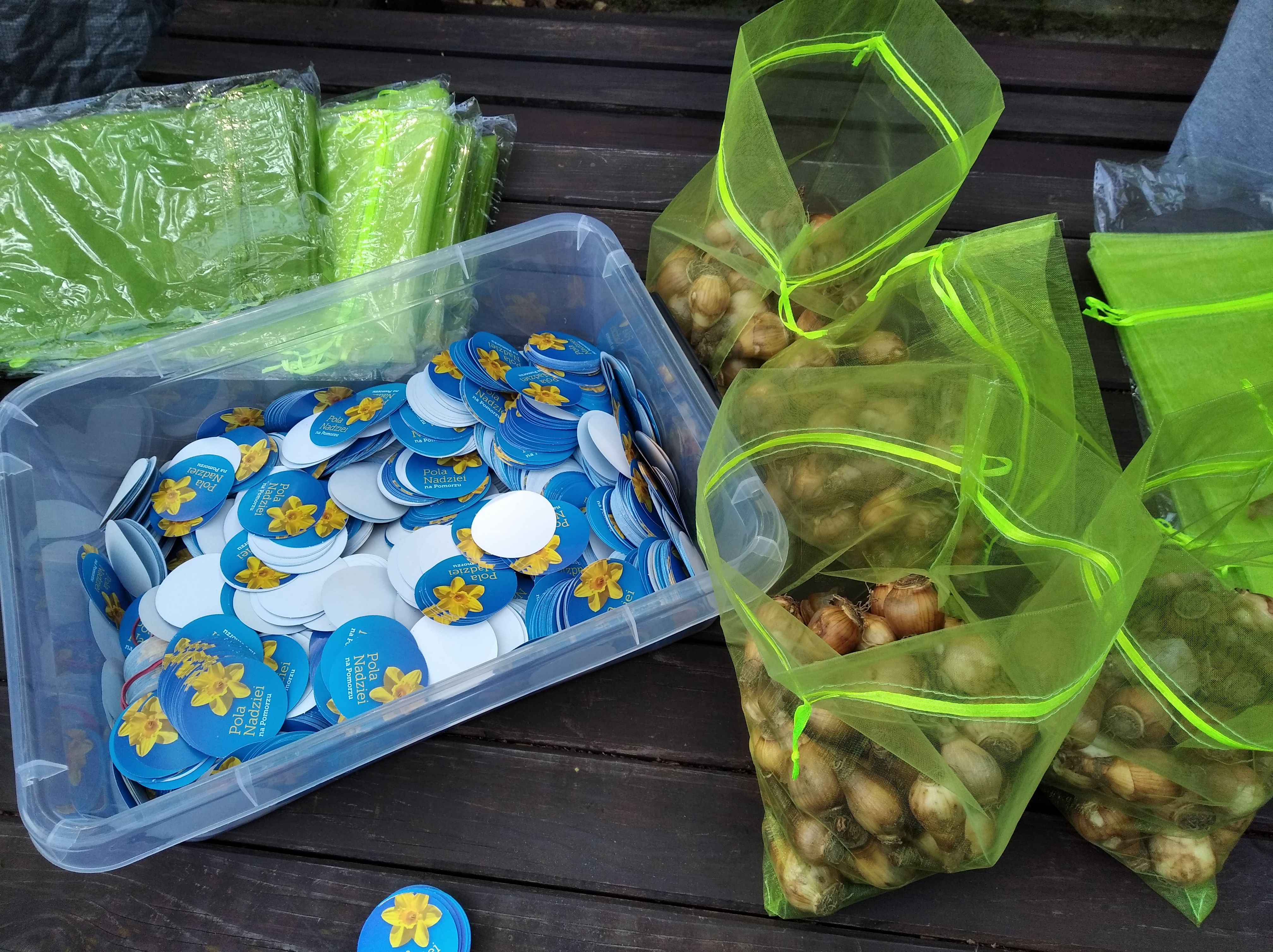 Tym samym już przedstawiciele wolontariatów przyjeżdżają i odbierają cebulki oraz tabliczki, by móc sadzić żonkile w swoich przestrzeniach społecznych. Można jeszcze się zgłosić po taki pakiecik.