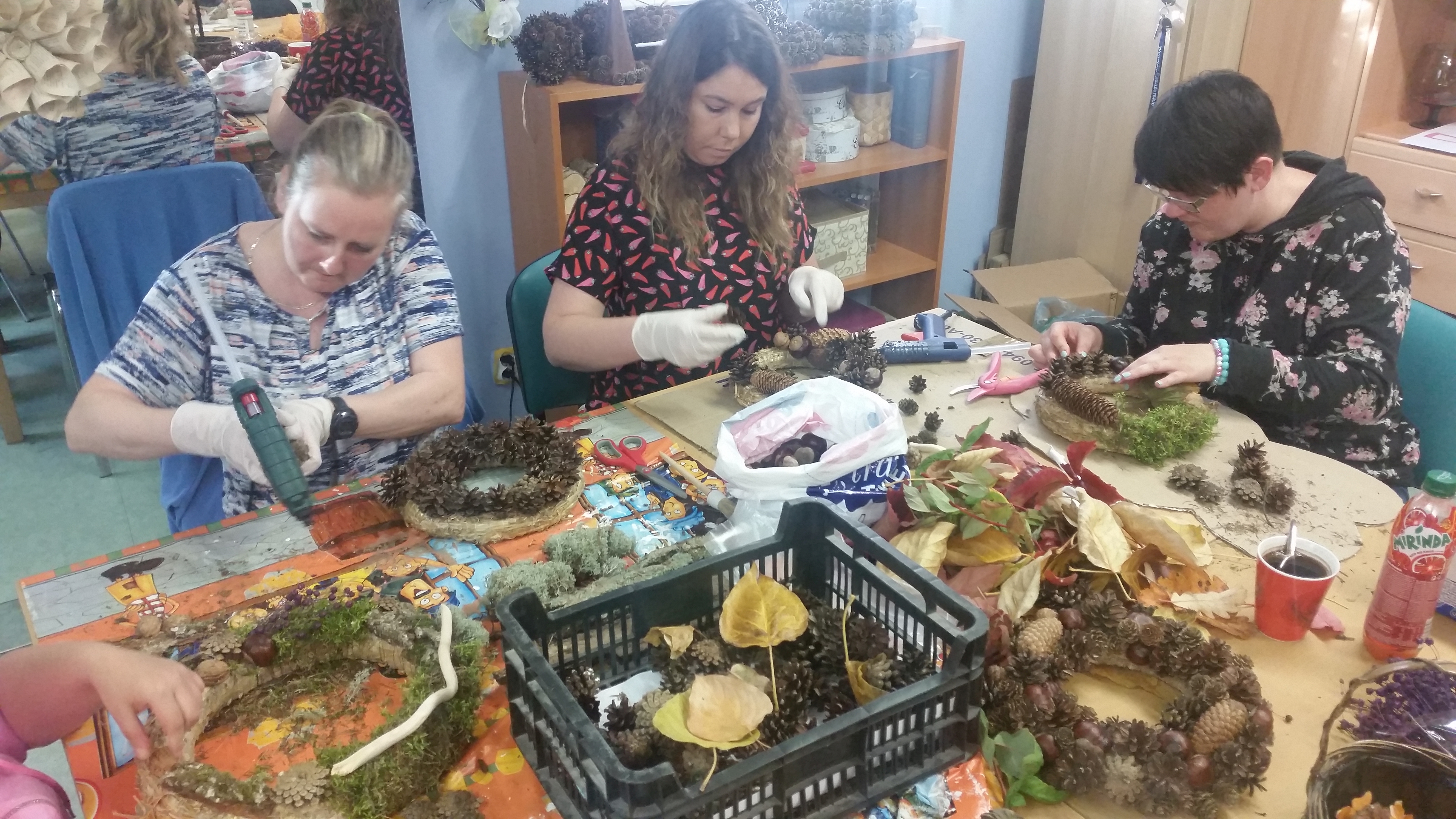 Uczestnicy projektu „Kierunek samodzielność” z wielkim zaangażowaniem wykonywali ozdoby, których część została przeznaczona na groby bliskich, a część zrobiono już z myślą o zbliżających się Świętach Bożego Narodzenia.
