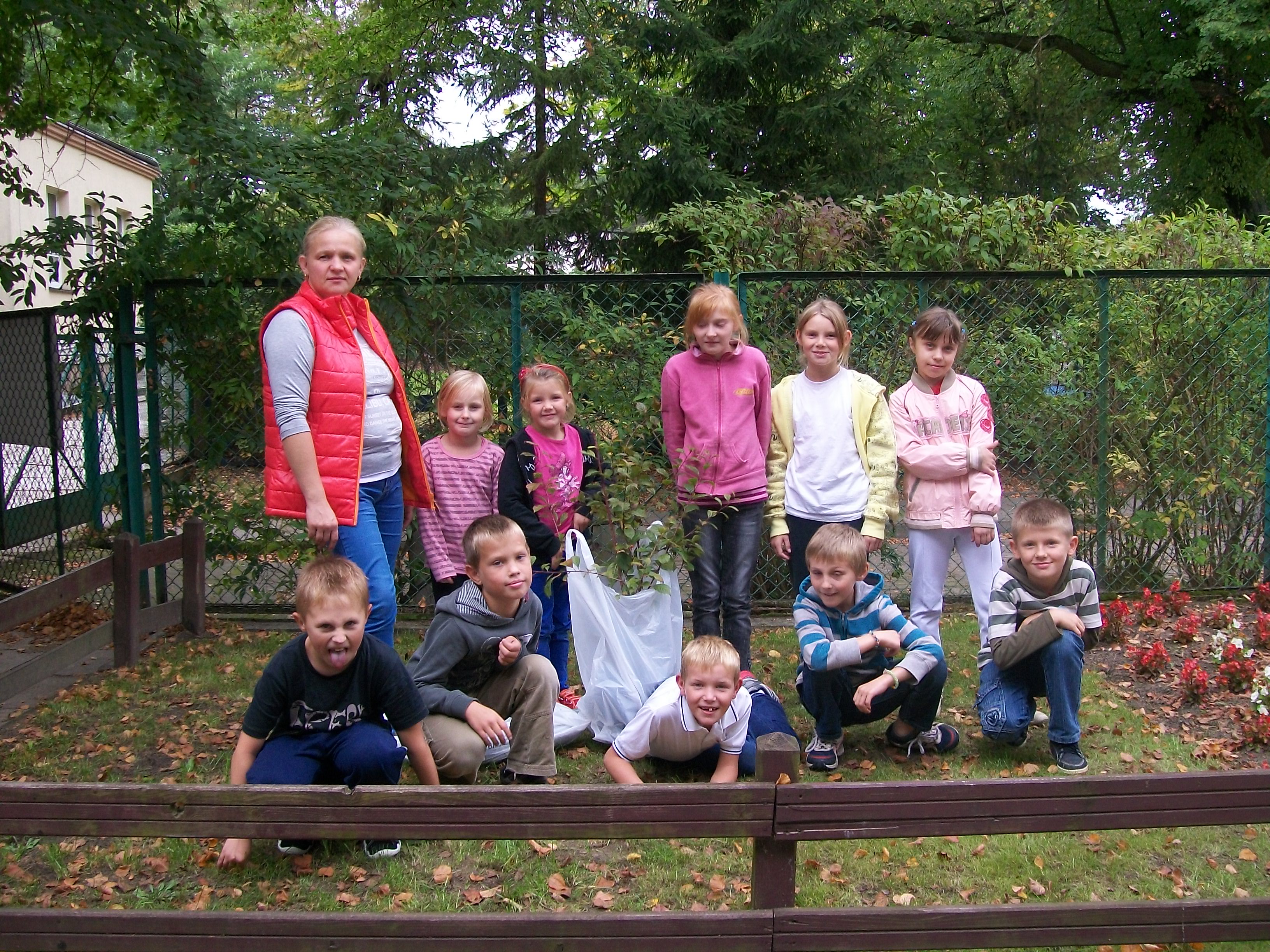 Udało nam się również zasadzić drzewko przy naszej świetlicy. Wcześniej przygotowaliśmy teren – uprzątnęliśmy liście i wypieliliśmy kwiaty dookoła. Nasze drzewo to drzewko ozdobne z gatunku „migdałek”. Teraz czekamy, aż nam pięknie zakwitnie na wiosnę.