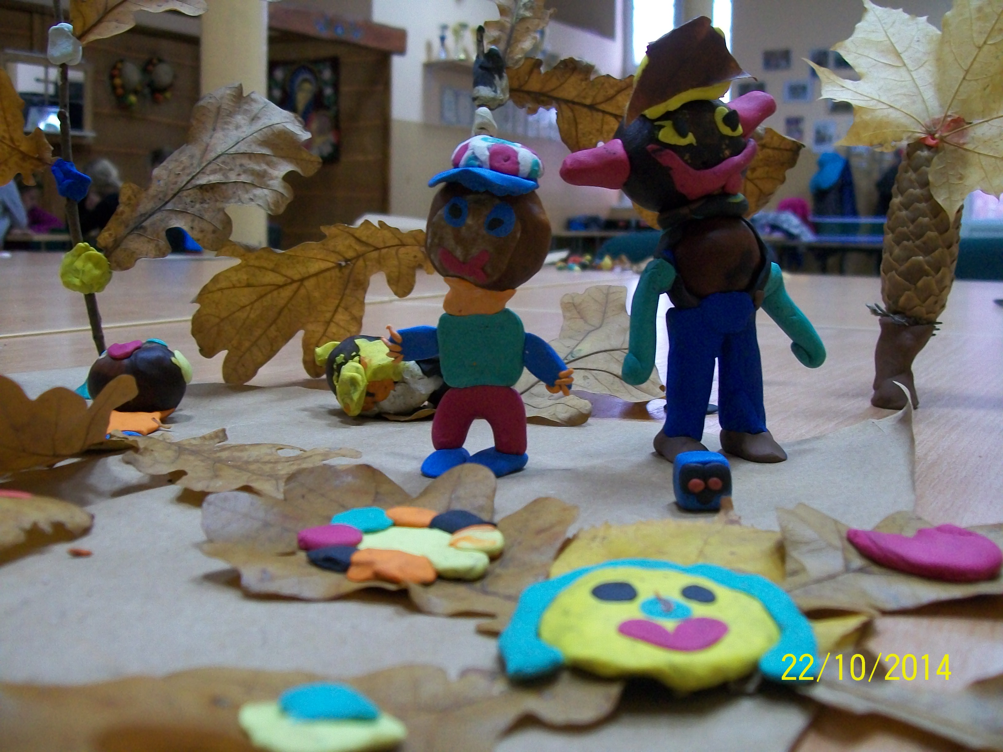 Jesień to czas, kiedy w lesie jest mnóstwo skarbów, dlatego podczas zajęć w świetlicy w październiku chętnie chodziliśmy na spacery i zbieraliśmy różne okazy. Część z nich przygotowaliśmy do zasuszenia, żeby przygotować potem z nich zielnik, a reszta posłużyła nam do wykonania różnych małych dzieł sztuki.