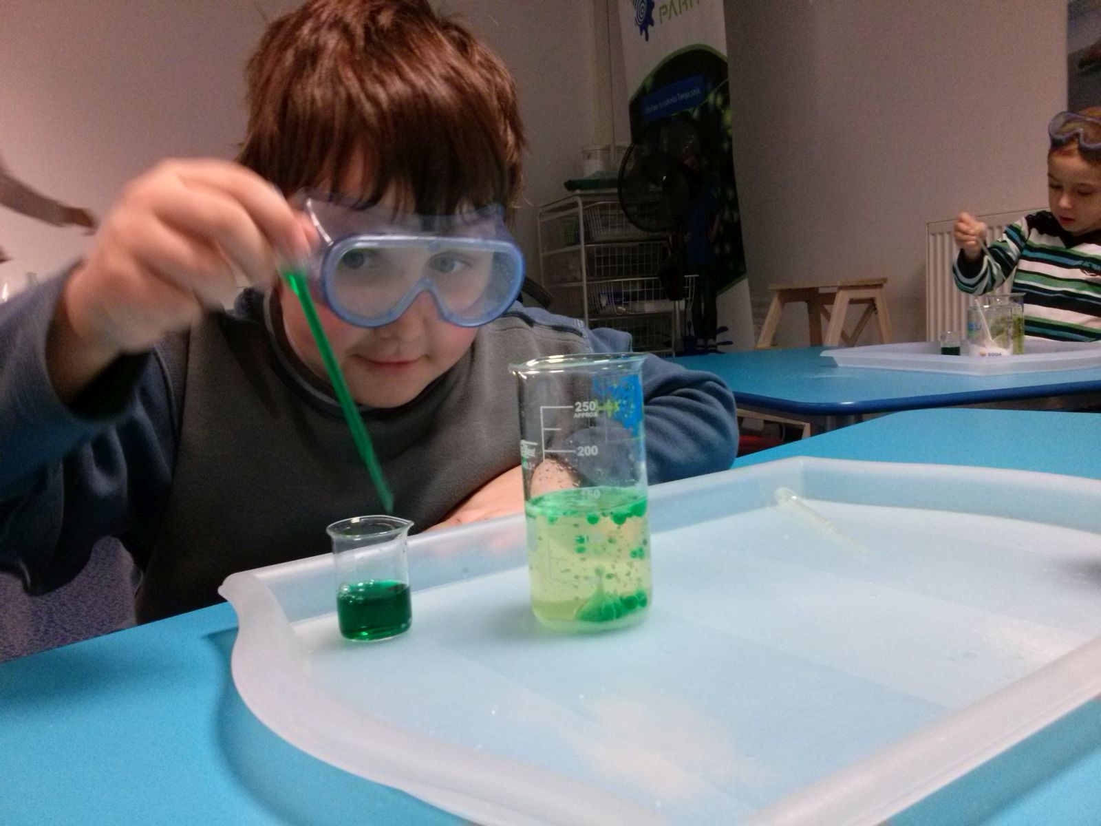 28 listopada 2014 dzieci z grupy Anielska Kraina uczestniczyły w warsztacie z chemii. Dzieci uzyskały informację o zawodzie chemika i o niezbędnych mu w pracy przyrządach. Udało im się zrobić wulkan z wypływającą różową lawą, nadmuchać baloniki bez używania ust i wytwarzali kolorowe bąbelki. Dzieci były zachwycone możliwością samodzielnego przeprowadzania doświadczeń chemicznych i ich efektami. Był to już ostatni taki wyjazd do Eduparku w ramach projektu „Mały Naukowiec”.