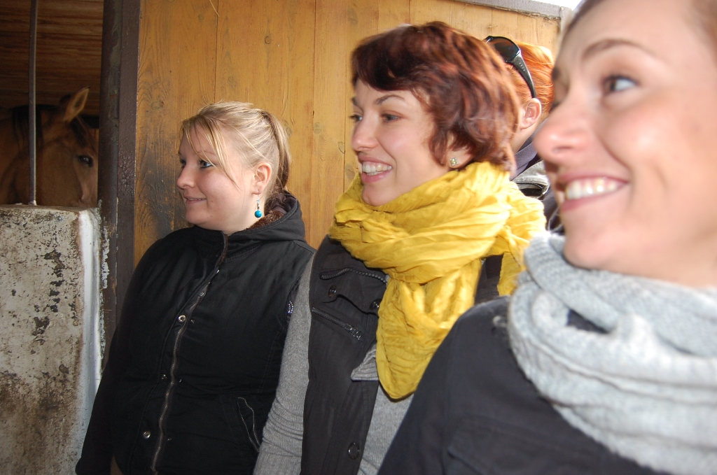 Wyjazd był pełen niespodzianek. Uczestnicy wiedzieli tylko, że w ramach biletu wstępu mają zabrać ze sobą marchewkę dla koni. Po przyjeździe zostaliśmy zarposzeni do stajni, gdzie czekały konie, na kórych mieliśmy jeździć… ale najpierw trzeba było je do tej jazdy przygotować. Niektórzy mieli obawy w zbliżeniu się do tak dużych zwierzaków, ale szybko się przełamali. Po wyczyszeczniu i osiodałniu konie były gotowe do jazdy. My trochę mniej, ale podjęliśmy wyzwanie.