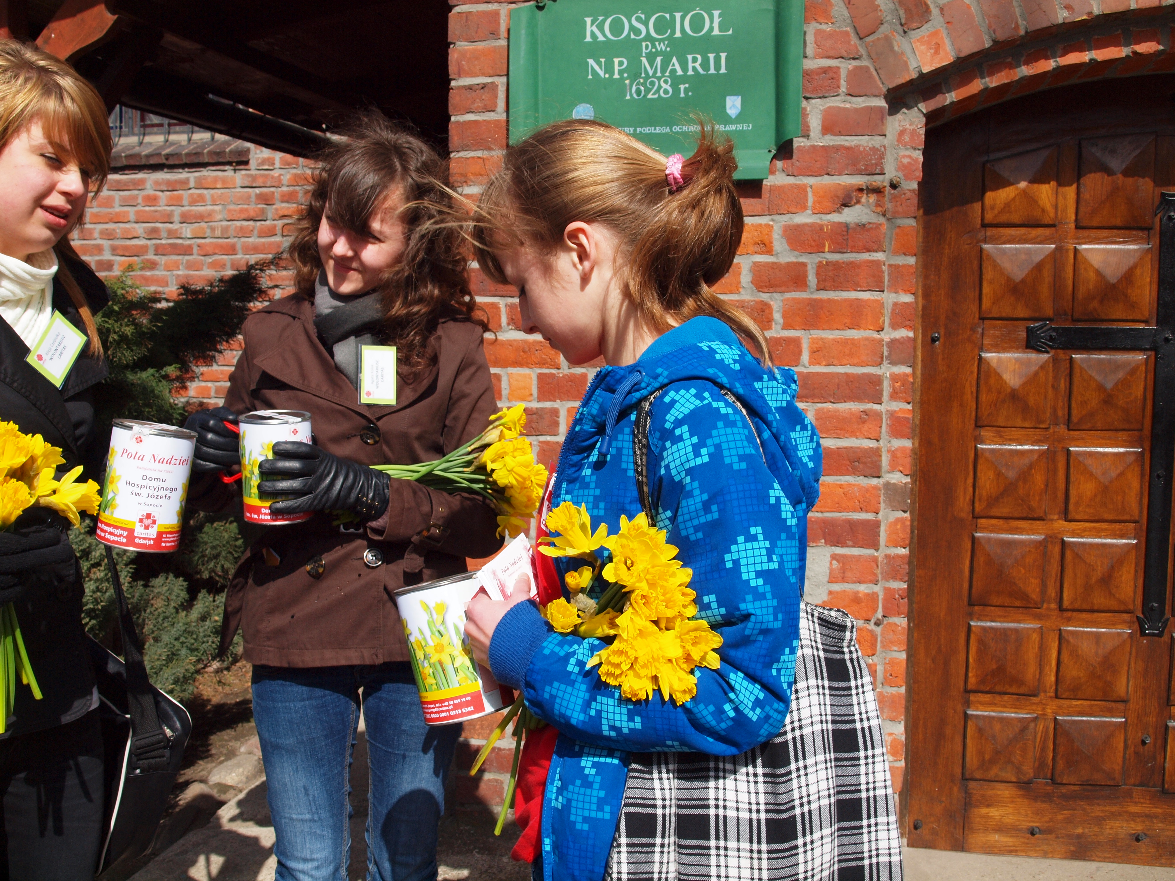 W niedzielę 10 kwietnia wolontariuszki z Ośrodka Rewalidacyjno-Edukacyjno-Wychowawczego w Trąbkach Wielkich, wzięli udział w kampanii na rzecz chorych w hospicjach – Pola Nadziei. Młodzież rozdawała przed kościołem parafialnym żółte żonkile. Każdy kto zechciał, mógł wesprzeć tę szlachetną akcję i otrzymać symbolizującego nadzieję kwiatka. Mieszkańcy Trąbek Wielkich czynnie wzięli udział w kampanii, za co im serdecznie dziękujemy! Dziękujemy również naszym dzielnym wolontariuszkom!