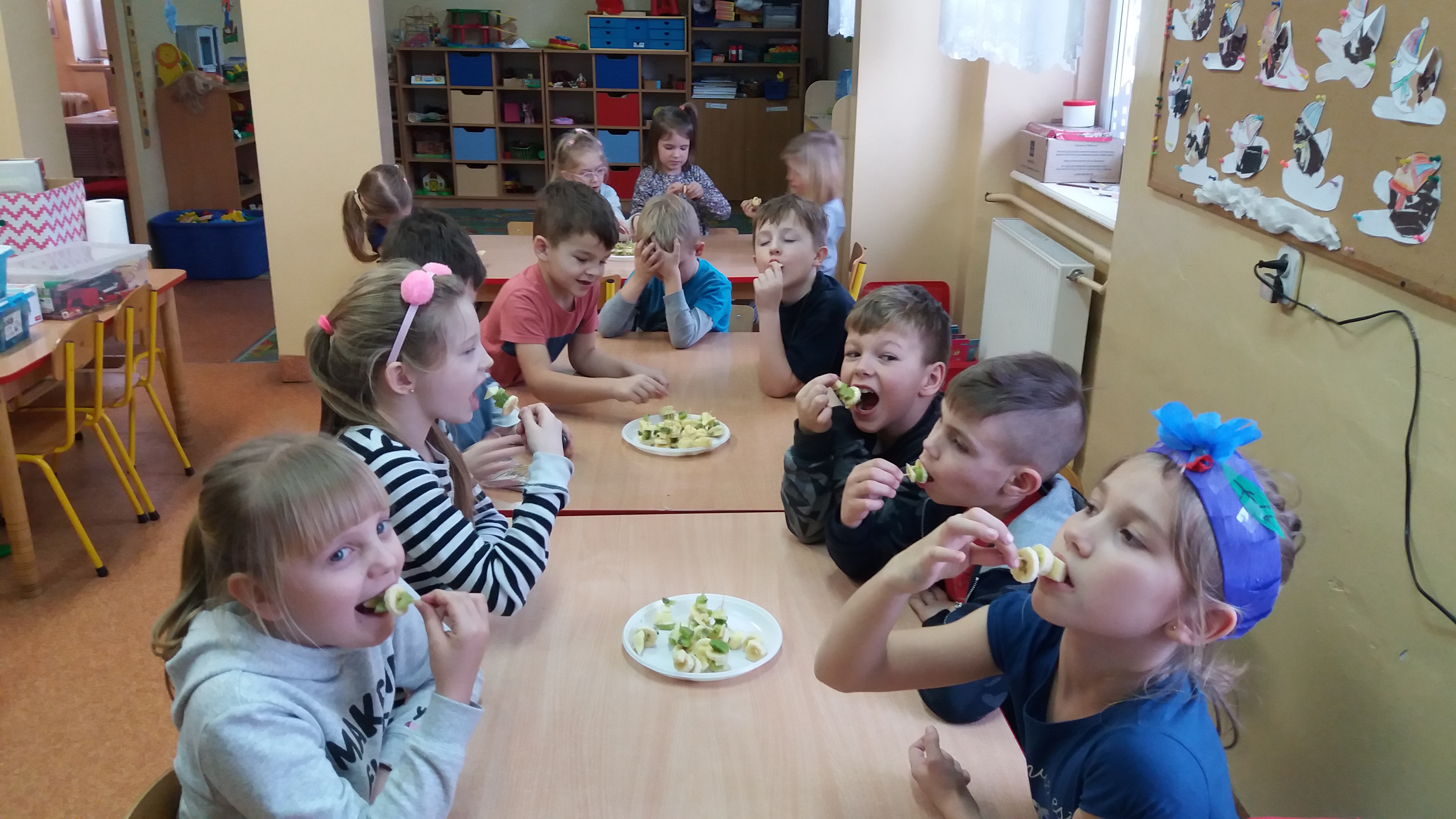 Styczeń i luty to miesiące karnawału. A karnawał to czas balów i zabaw. Karnawałowe przyjęcia, to nie tylko dobra muzyka i doborowe towarzystwo, ale także coś pysznego „na ząb”, czyli tzw. „przekąski”. Coś pysznego i podanego w inny sposób posmakowały dzieci ze świetlicy Caritas w Tuchomiu. Jadły pyszne tortille z warzywami i kurczakiem, a na podwieczorek zajadały owocowe koreczki. Wszystko im bardzo smakowało.