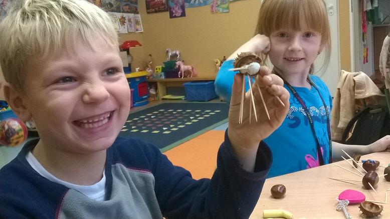 Pora roku jaką mamy za oknem, spadające kolorowe liście no i kasztany zmotywowały nas do zrobienia „cudaków” z owego właśnie skarbu jesieni jakim są kasztany. Tym bardziej, że kasztany same się prosiły o wykorzystanie ich, ponieważ przy wejściu do naszej świetlicy w Sulminie rosną wielkie dwa kasztanowce. Zatem podkasaliśmy rękawy i zabraliśmy się do pracy.