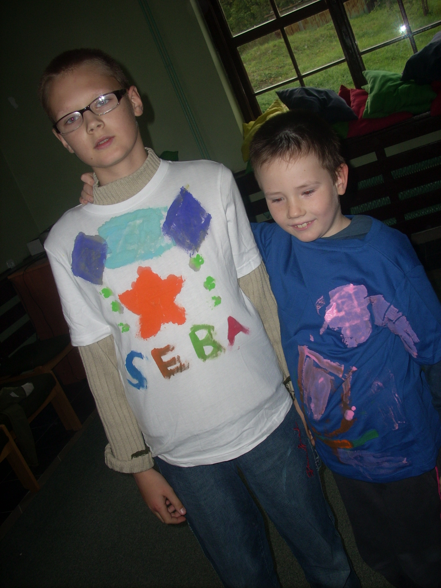 Od szóstego do ósmego października pokoje świetlicy „Pod Kasztanem” przeobraziły się w artystyczne salony mody. Dzieci wzięły udział w projekcie malowania koszulek. Każdy mały „projektant” lub „artysta” miał możliwość wyboru pierwotnego koloru koszulki przed rozpoczęciem procesu tworzenia własnych odzieżowych arcydzieł. Niektóre dzieci potrzebowały zaledwie godziny aby zakończyć pracę, inne były o wiele bardziej skrupulatne i prosiły o dwa lub nawet trzy dni czasu, upiększając coraz bardziej swoje dzieło małymi ozdobnymi elementami. Wybór obiektu namalowanego na tkaninie zależał od życzenia dziecka. W końcu stanęliśmy przed gotowymi koszulkami przedstawiającymi miłe zwierzątka: niedźwiadki lub małpki, odbicia rąk, nazwy ulubionych drużyn piłkarskich, serca lub też słodkie i raczej impresjonistyczne figury. W każdym razie, wszystkie dzieci były mocno zaangażowane w zajęcia i dumne z ich wyniku, pokazując swoje koszulki rodzicom i przyjaciołom jeszcze zanim były gotowe. Miło było odkryć iż dzieci były jednakowo zainteresowane stworzeniem niepowtarzalnej koszulki dla innych osób … nie powiemy komu bo to niespodzianka!. Przez następne dni po projekcie malowania koszulek, dzieci przychodziły do świetlicy w nowych, udekorowanych przez siebie koszulkach, co pokazało, iż projekt nie był jedynie zabawą, ale znalazł też swoje zastosowanie w życiu codziennym!