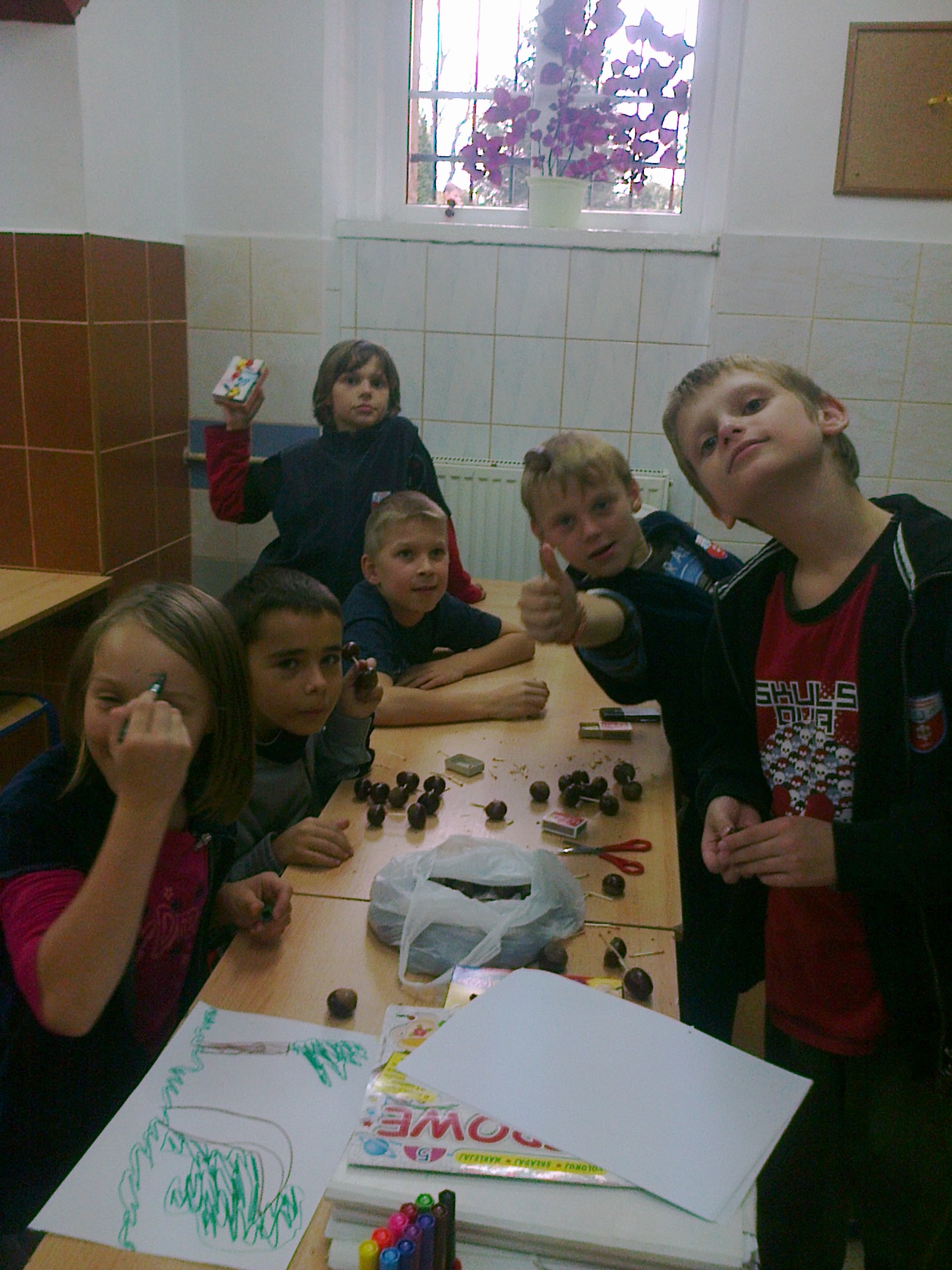 Dzieci ze świetlicy w Pępowie w ramach realizacji programu profilaktycznego pt. „Cztery pory roku”, wykonują prace z kasztanów. Pomysłów jest dużo, ale najbardziej popularne są tzw. ludziki. Podczas pracy jest okazja do zastanowienia się, podpatrzenia co robią inne dzieci albo do swobodnych rozmów…. Poruszane są również tematy dotyczące ekologii.
