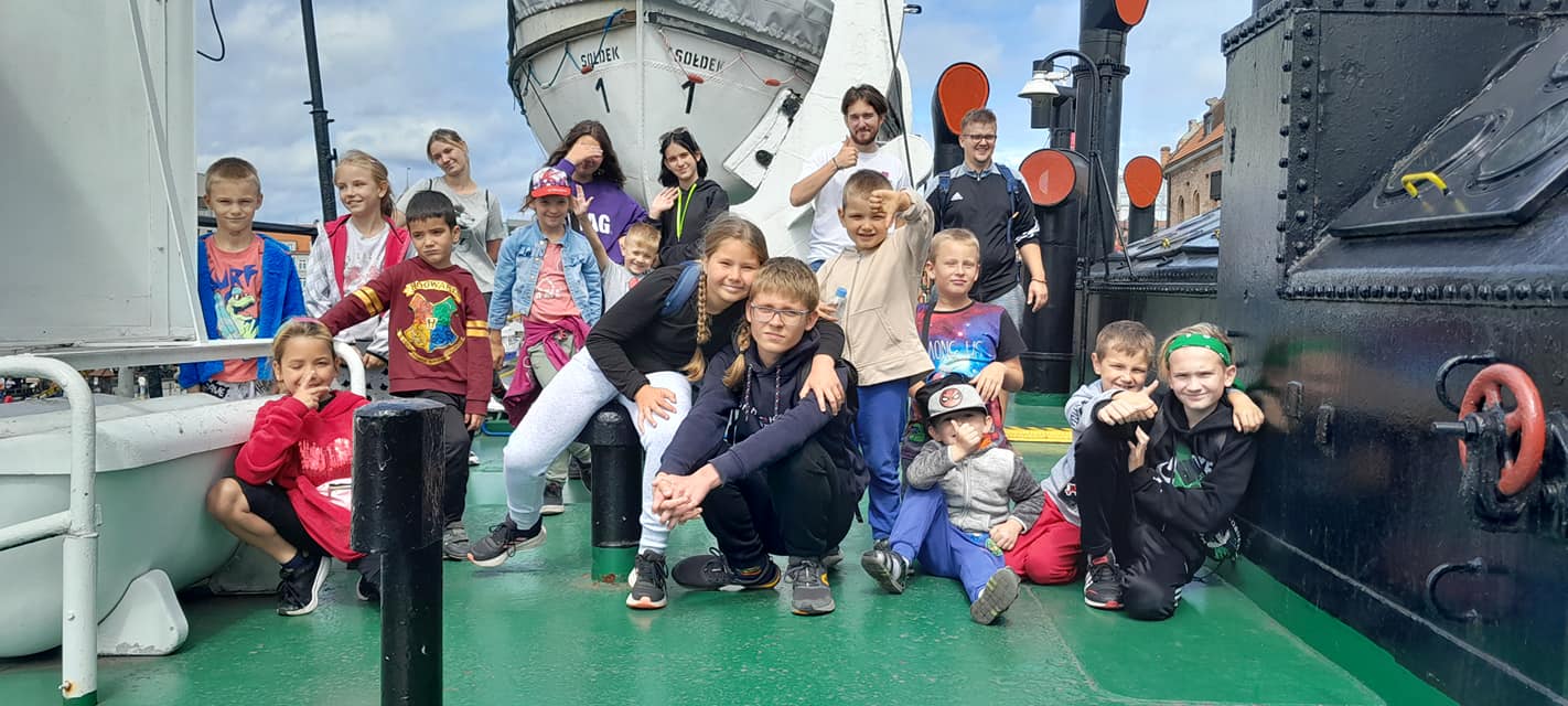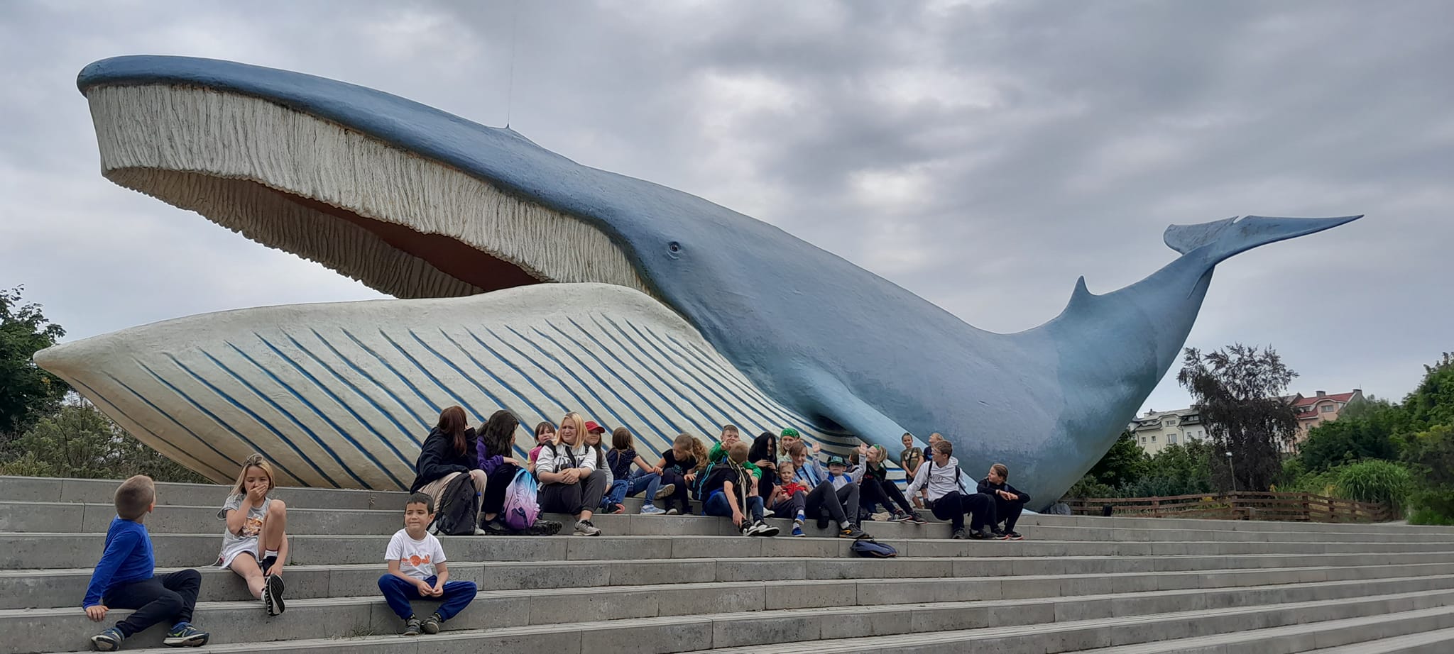 Byliśmy też na kilku wyjściach. Odwiedziliśmy Oliwskie ZOO i oczywiście zrobiliśmy sobie zdjęcie przy pingwinie. Macie też takie? Pomimo pogody w kratkę zobaczyliśmy wszystkich mieszkańców Ogrodu. Podążając tropem zwierząt pojechaliśmy do Akwarium Gdyńskiego – wiecie, że rekin grenlandzki prawdopodobnie żyje około 400 lat? – i do Władysławowa do Ocean Parku. Ale tam było zabawy, radości i także dużo informacji o mieszkańcach mórz i oceanów. Kontynuowaliśmy morskie opowieści w Muzeum Morskiem, a dokładnie na Sołdku. Jaki to jest ogromny Statek – jak ktoś jeszcze nie był to polecamy.