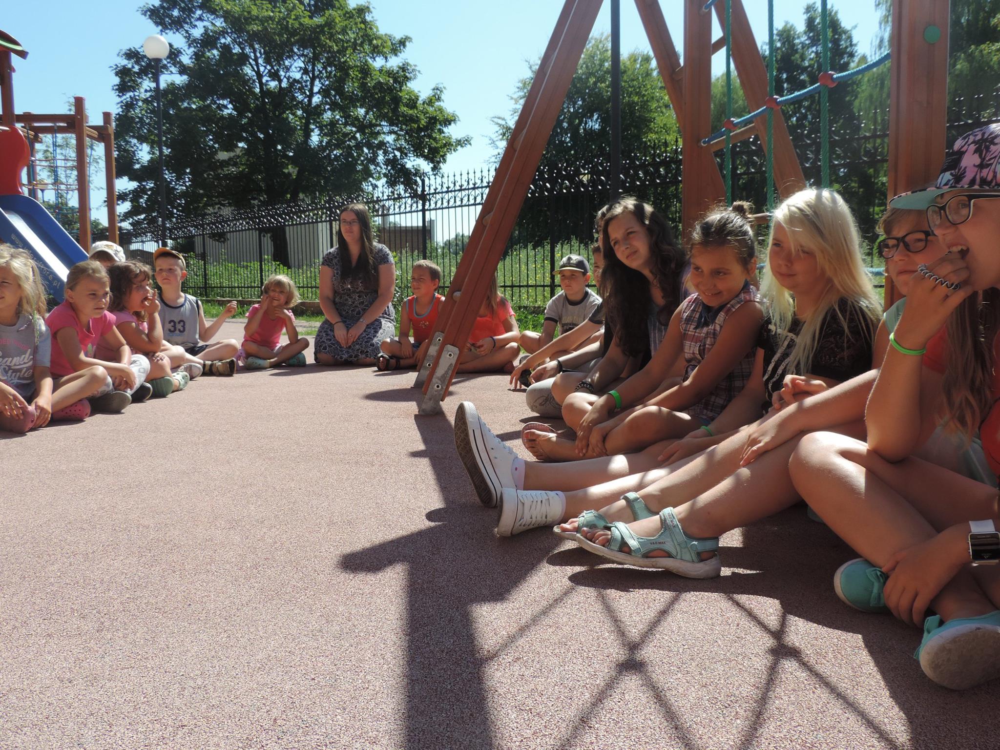 Nowy wakacyjny tydzień rozpoczęliśmy od odwiedzin zaprzyjaźnionej świetlicy na Dolnym Mieście w Gdańsku. Zabawom i uśmiechom nie było końca! Czekały na nas pyszności w postaci słodkiego poczęstunku, po którym wspólnie wyruszyliśmy bawić się w podchody 🙂 Wtorek upłynął nam na zabawach w Parku Regana. Co prawda plany mieliśmy nieco inne, ale sinice w morzu trochę nam je pokrzyżowały. Mimo tego super spędziliśmy ten dzień! W środę odpoczęliśmy trochę od zwiedzania i przygód poza świetlicą. Nasze ciocie przygotowały dla nas „Kasztanowe Kino”. W repertuarze znalazły się: „Jak wytresować smoka 2” oraz „Zaczarowana”. Nie starczyło nam czasu na „Pacyfikatora”, ale jeszcze nic straconego 🙂 Szybko nadszedł ostatni dzień tygodnia, wyjątkowo był to czwartek. Motywem przewodnim było „Spotkanie z historią”. Tramwajem wodnym popłynęliśmy na Westerplatte, gdzie chętnie zwiedzaliśmy Wartownię nr1. Ci, którzy mieli jeszcze siłę, dotarli pod sam pomnik Westerplatte. Dzień zakończył się spacerem i zwiedzaniem Twierdzy Wisłoujście. Takie przygody lubimy najbardziej! Kolejny tygodniu – czekamy na Ciebie 🙂