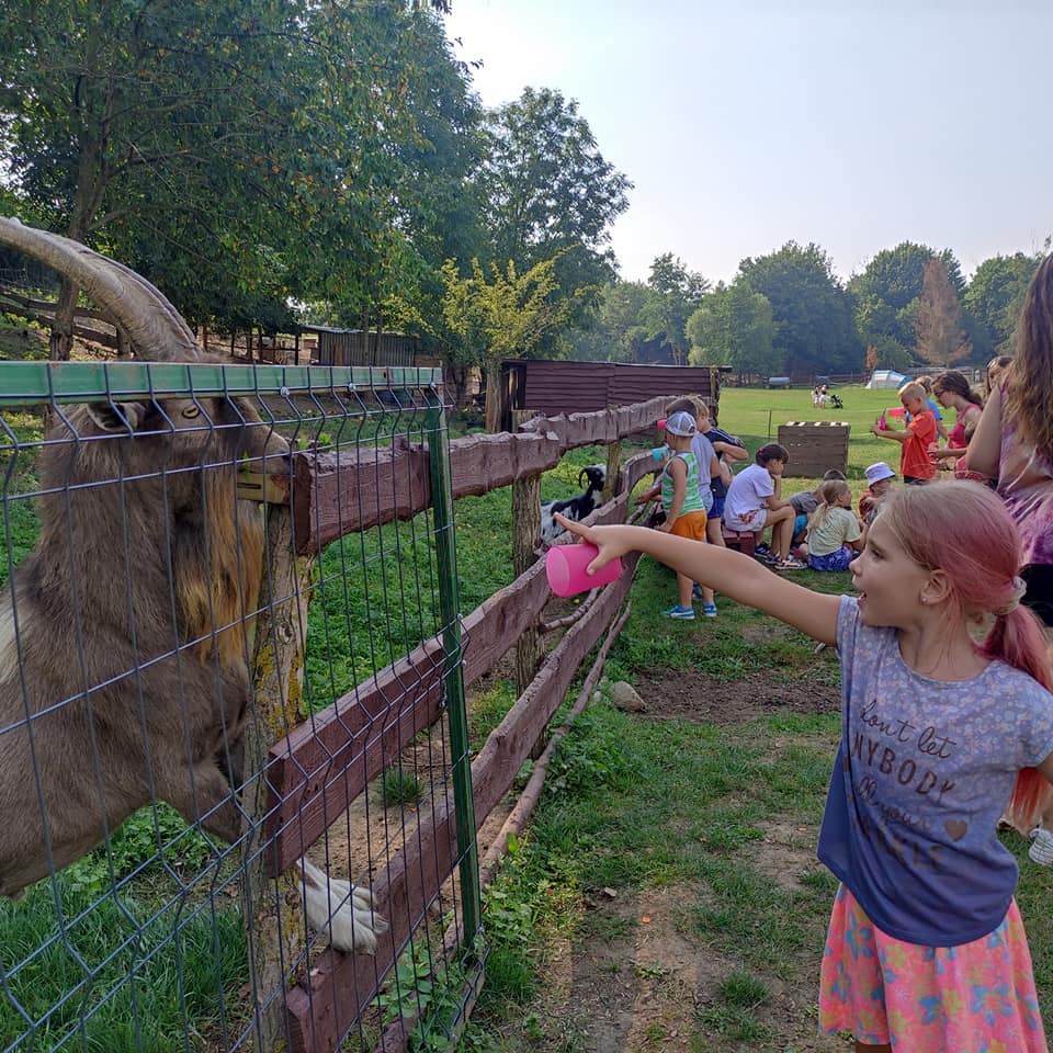 Następne dni zleciały nam bardzo szybko. Wszystko co dobre mija raz dwa… Graliśmy w kręgle, chowanego, piłkę nożną i klasy.  Odwiedziliśmy Zwierzęta Nad Potokiem, gdzie mieliśmy okazję do zobaczenia, pogłaskania i nakarmienia wyjątkowych mieszkańców tej farmy.