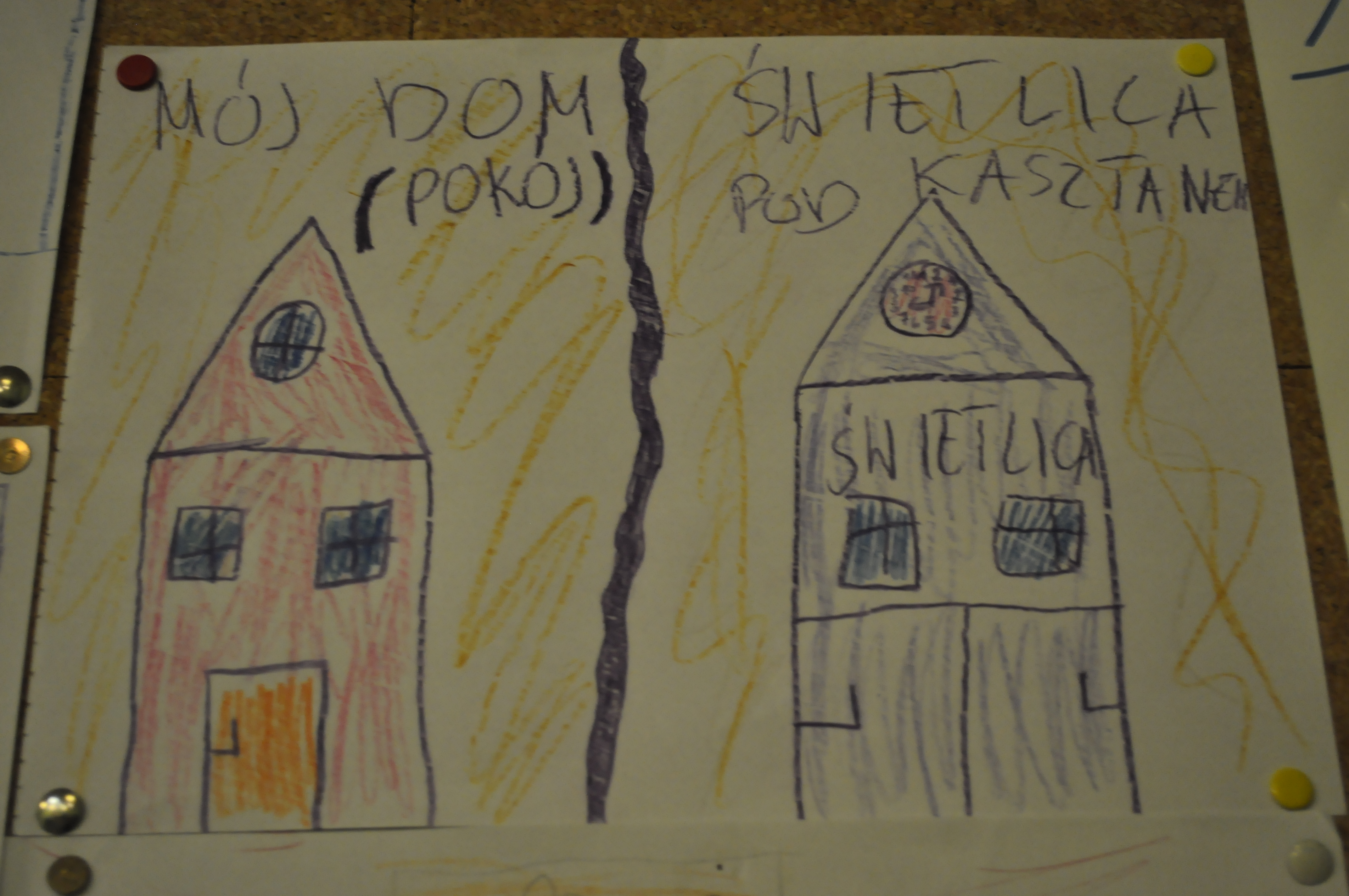 Listopad okazał się bardzo intensywnym miesiącem w naszej Świetlicy oraz pełnym niespodzianek! Pierwszą z nich był nowy wolontariusz – wujek Martim – który przybył do nas z Portugalii. Do tej pory niewiele wiedzieliśmy o tym kraju, ale dzięki wujkowi mieliśmy okazję dowiedzieć się wielu ciekawostek o Portugalii, jak i samym wujku. Teraz wiemy, że wujek jest wokalistą jazzowym i był członkiem zespołu jazzowego w Portugalii (mieliśmy nawet możliwość usłyszeć, jak wujek śpiewa!). Ten miesiąc był dla nas między innymi miesiącem integracji z wujkiem Martimem, która bardzo nam się podobała! Cieszymy się, że dołączył on do naszego kasztanowego grona 🙂 Oprócz nowych osób w świetlicy, nie zabrakło również stałych „bywalców”, takich jak ciocia Iza, która przygotowuje dla nas warsztaty psychologiczne. Zaczęliśmy od warsztatów na temat świadomości własnego ciała. Pracowaliśmy w parach oraz w większych zespołach. Najbardziej spodobało nam się ćwiczenie z odrysowaniem własnego ciała – niektórym wyrosła druga głowa albo dodatkowa ręka! W tym miesiącu dużo rozmawialiśmy o naszych emocjach. Uczyliśmy się je rozpoznawać, wyrażać za pomocą mimiki twarzy. Wspólnie z ciocią Izą pracowaliśmy nad tym, jak radzić sobie z trudnymi emocjami, które często towarzyszą nam w codziennym życiu, jak nie dać się im! Były to dla nas bardzo ważne zajęcia, z których na pewno będziemy korzystać! Na warsztatach psychologicznych pojawił się również temat szacunku – do siebie i do innych osób. Samodzielnie oraz w grupach zastanawialiśmy się nad tym, jakie zachowania świadczą o szacunku, a jakie o jego braku. Podawaliśmy przykłady takich zachowań. Na koniec zajęć odbył się mini quiz wiedzy na temat szacunku. Okazało się, że wszyscy prawidłowo odpowiadali na zadawane pytania 🙂 Z nową dawką kreatywności odwiedziła nas również ciocia Ala. Zajęcia z arteterapii były w tym miesiącu jeszcze bardziej twórcze! Zaczęło się od skutecznej komunikacji i przeszkód w jej uzyskaniu. Wspólne budowanie toru przeszkód obudziło w nas umiejętności tworzenia najbardziej skomplikowanych przejść, zakrętów i czyhających niespodzianek :)Na koniec zajęć zamieniliśmy się w małych wynalazców i tworzyliśmy urządzenia ułatwiające komunikację. Kto wie…może kiedyś będziemy z nich korzystać! Czas na zajęciach z ciocią Alą minął nam również na przygotowywaniu ozdób na kiermasz, który już niedługo! Nasza świetlicowa sala zamieniła się w świąteczną pracownię 🙂 Powstały piękne świeczki, stroiki, bombki wykonane różnymi technikami oraz zawieszki na choinkę. A to dopiero początek przygotowań!