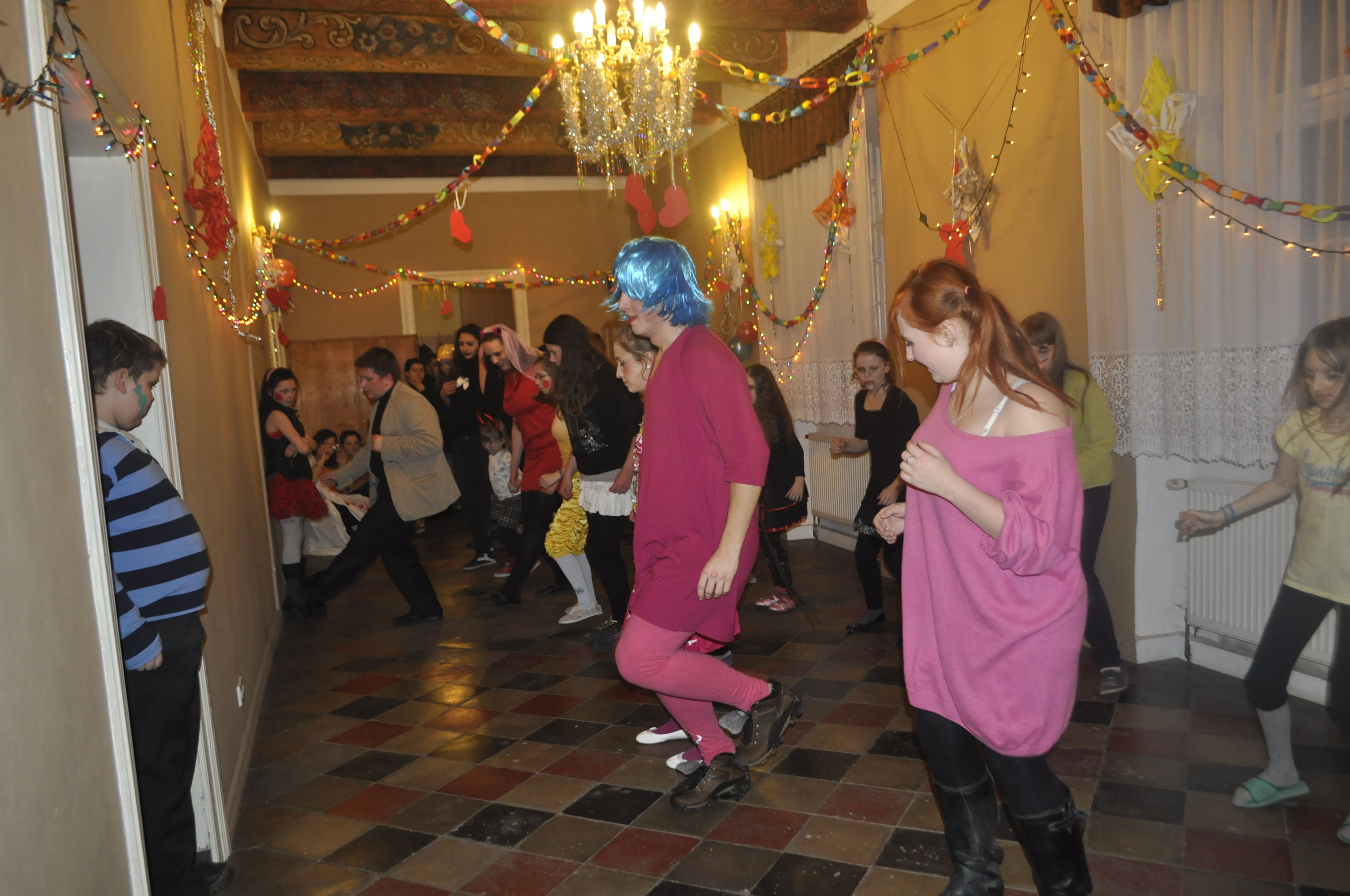 Wczoraj spotkaliśmy się na balu Karnawałowo- Walentynkowym w Świetlicy „Słoneczne Wzgórze”. Bal był pod hasłem: „Zostań moim słodkim potworem”.  Śmiechu było dużo najpierw przy wymyślaniu strojów, a potem jak już dotarliśmy na miejsce i zobaczyliśmy efekty naszej pracy. Poprzebieraliśmy się w:  zombie, wampiry, bobasy, chłopcy przebrani za dziewczyny nawet były cukierkowe potworki ;-). Zabawa była niesamowita, sala pięknie udekorowana, fachowa obsługa Dj-ska,  ks. Karol  próbował nauczyć nas tańczyć tańca plemiennego i rumuńskiego z różnymi efektami. Na poczęstunek były przepyszne kolorowe kanapki oraz jak przystało na Tłusty Czwartek mnóstwo pączków  z dżemem i serowych – nikt nie wyszedł głodny.