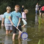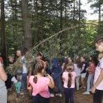 Środa – dzień trzeci – zaczęła się deszczowo. Na szczęście byliśmy na taką ewentualność przygotowani. Pani Ola, która na co dzień mieszka w Zielonej Szkole, przygotowała dla nas warsztaty plastyczne w tematyce recyklingu. Co można zrobić ze starych gazet lub butelek? My stworzyliśmy papierowe pudełka na drobiazgi oraz malowane, kolorowe wazony. Oczywiście zabraliśmy je ze sobą, by pochwalić się nimi w domu po powrocie. Może komuś już służą jako wazonik lub ozdoba? Po południu czekały na nas kolejne zajęcia. Tym razem czekała nas piesza wycieczka przez las nad jezioro a tam…duża atrakcja. W drodze dowiedzieliśmy się, jak powstała Ziemia oraz co to są torfowiska. Nad jeziorem czekało na nas zadanie: łowienie zwierzątek. Udało nam się złowić raka amerykańskiego, wiele małż, płotki…Niektórym nawet pijawki! Dowiedzieliśmy się też, jakie są aktualne zagrożenia nie tylko dla wód w Polsce ale również całej przyrody. Była to bardzo ciekawa i pouczająca lekcja.