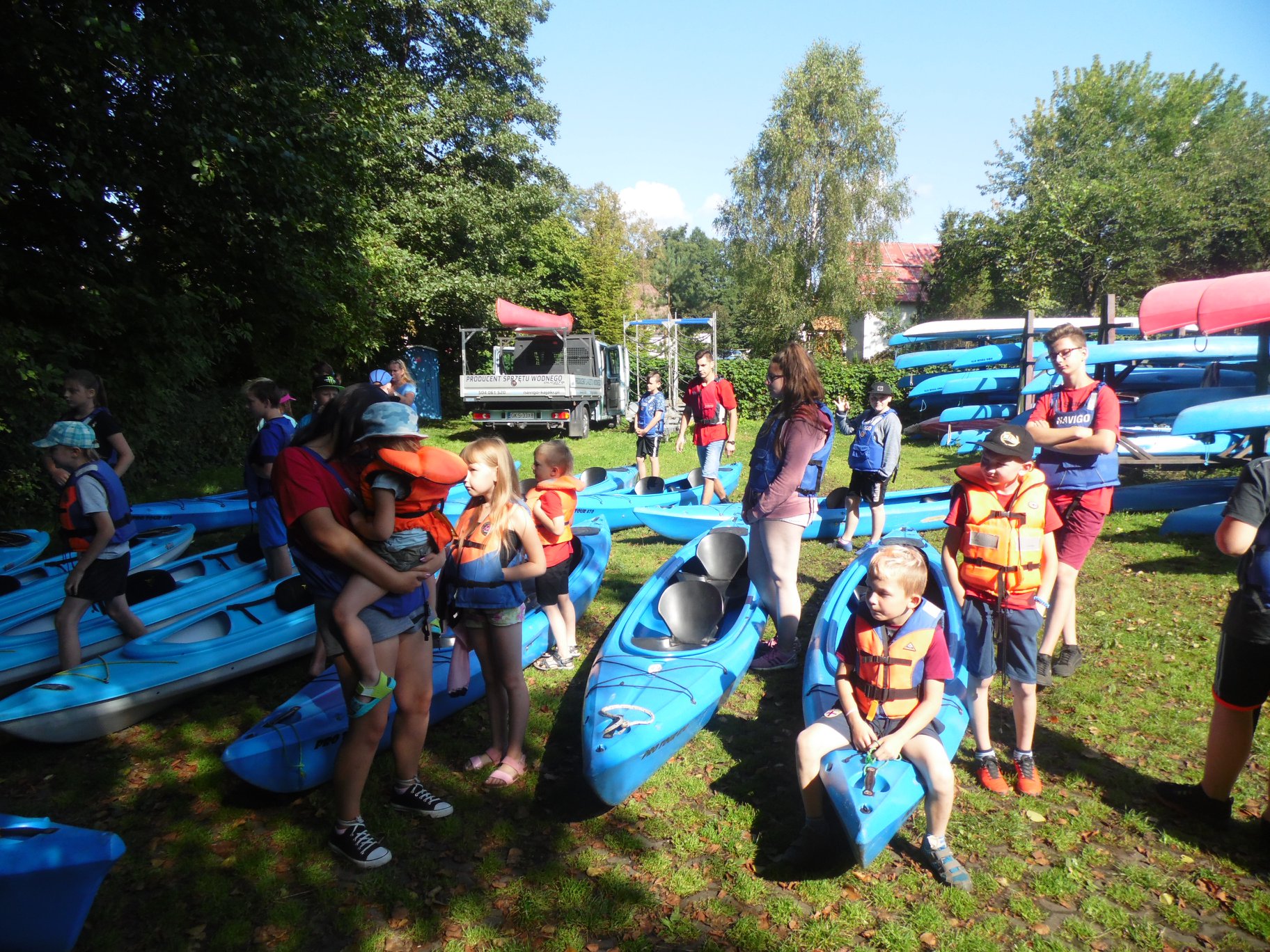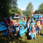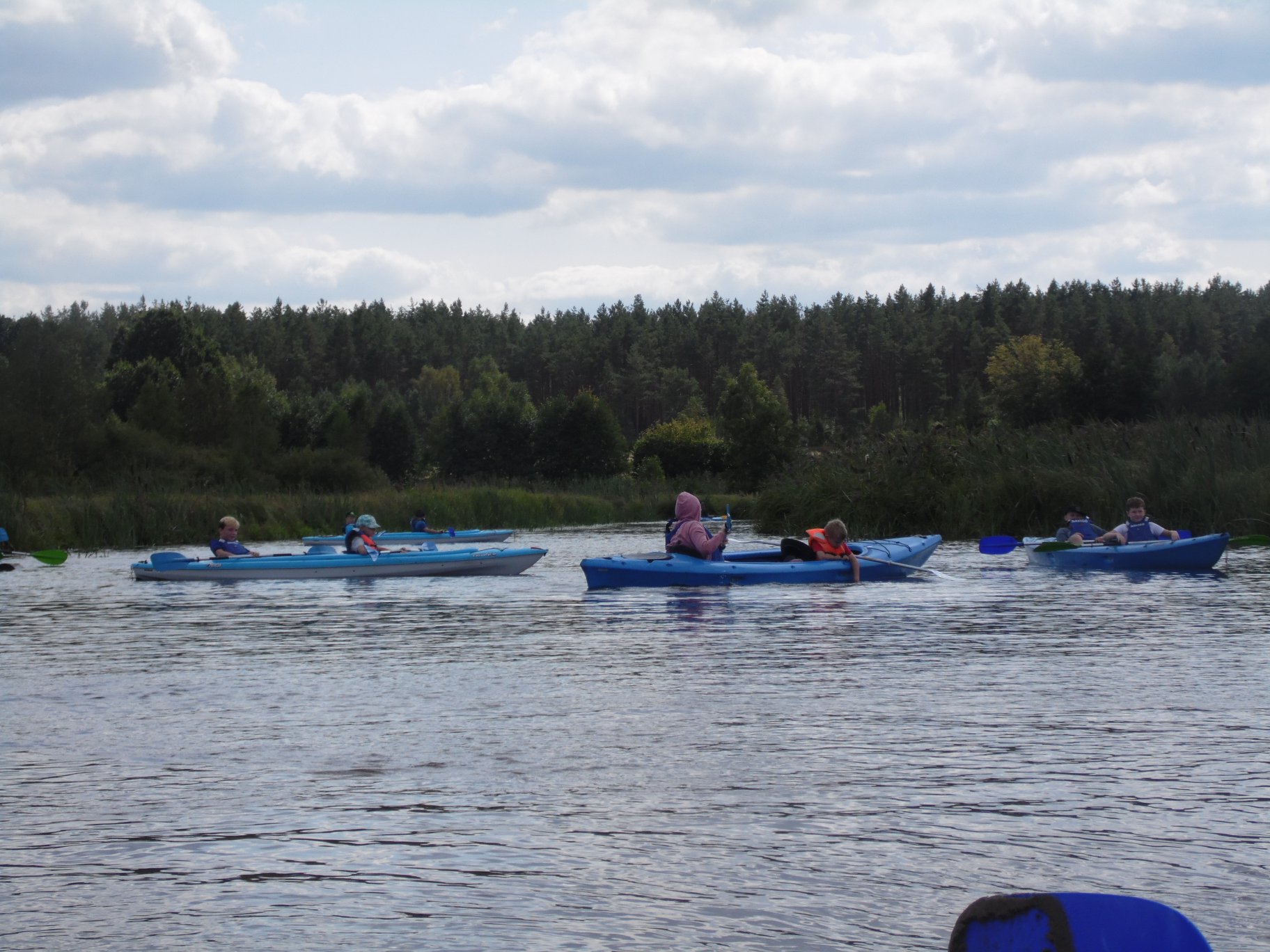 Nim się obejrzeliśmy, a przyszedł przed ostatni dzień koloni. Był on chyba najbardziej wyczerpującym, gdyż tego dnia odbył się spływ kajakowy rzeką Wda. Dla niektórych z nas pływanie kajakiem było nowością, inni swój debiut mieli już za sobą. 4 godziny wiosłowania, pokonywania małych przeszkód był tym, co sprawiło nam dużo radości, ale też po raz kolejny udowodniło nam, że świetnie ze sobą współpracujemy i dbamy o siebie nawzajem. Nie przepływaliśmy obojętnie, kiedy któryś z naszych kolegów i koleżanek miał problem z obraniem dobrego kierunku, lub gdy zaklinowało się. Dzięki temu spływ mijał nam w dobrej, wesołej i co najważniejsze, bezpiecznej atmosferze. Po dotarciu do Zielonej Szkoły musieliśmy trochę odpocząć, by mieć siły na zajęcia, które były przed nami. Najpierw wzięliśmy udział w przyrodniczej lidze zadaniowej – układaliśmy eko-krzyżówki, budowaliśmy kapsułę czasu, poznawaliśmy zwierzęta i rośliny chronione w Polsce. Ostatnie warsztaty wzbudziły dużo emocji. Ich bohaterami były…nietoperze. Najpierw były ciekawostki – ile jest gatunków nietoperzy i w Polsce i na świecie, jaka jest największa rozpiętość skrzydeł nietoperza oraz co to jest echolokacja. Chętni wybrali się na wycieczkę nad jezioro, by dzięki specjalnemu urządzeniu móc posłuchać tych interesujących ssaków. Wszyscy, którzy się nie zdecydowali na tę wycieczkę mogą żałować.