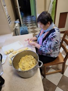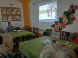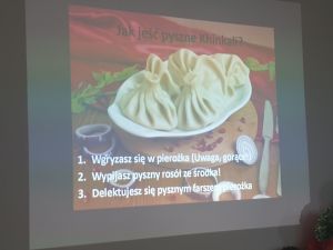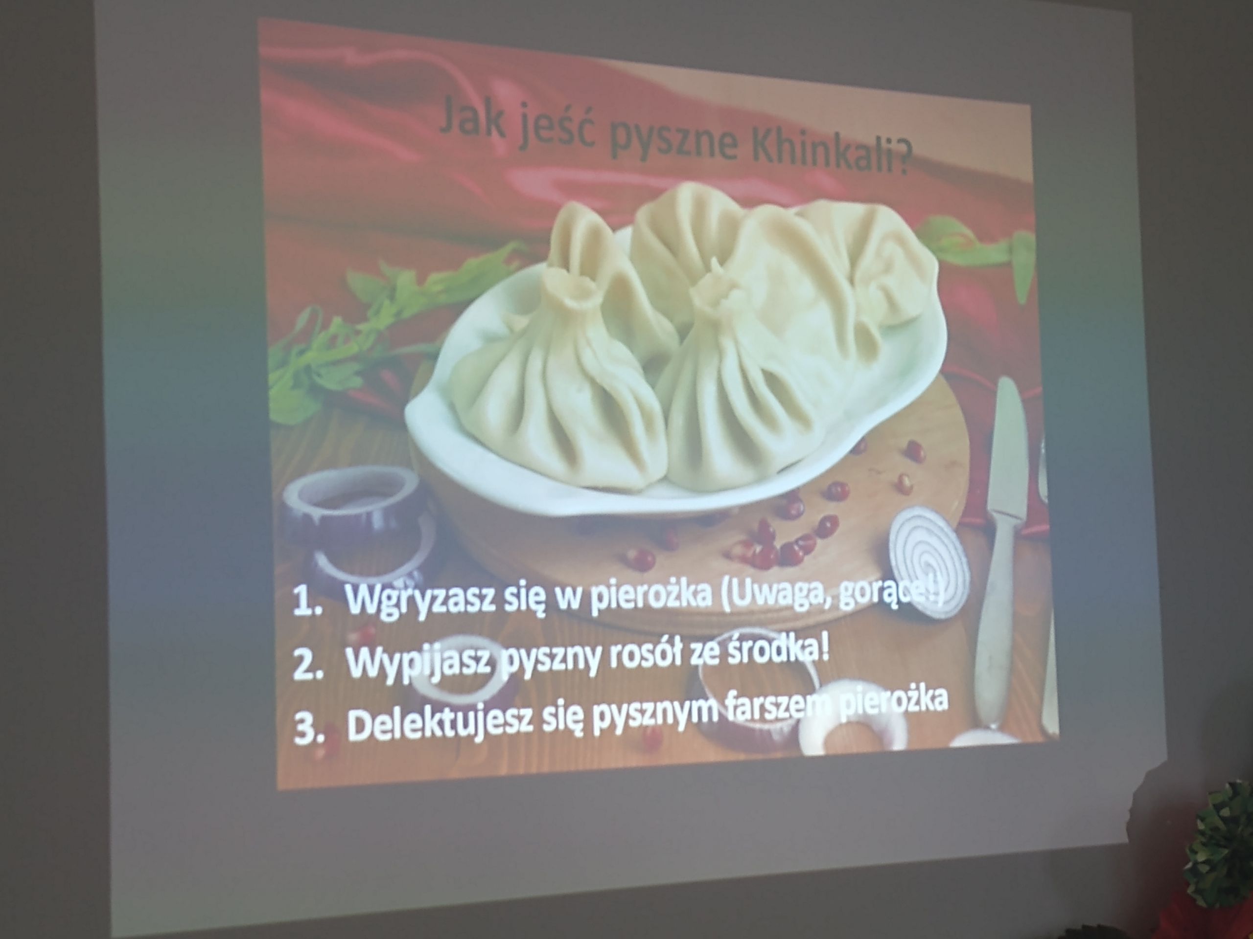Kolejny raz mieliśmy okazję poznać kawałeczek Gruzji. Irina przygotowała czwiszdwari – bułeczki z mąki kukurydzianej i sera, a następnie przedstawiła najważniejsze fakty oraz ciekawostki o Gruzji. Pokazała nam przepiękne widoki, puściła utwór, który został wysłany w kosmos, jako jeden z kilku z całego świata, zaprezentowała podstawowe ruchy gruzińskiego tańca oraz pomogła napisać seniorom ich imiona literami gruzińskiego alfabetu. Bardzo ciekawie i pysznie minął nam dzień.