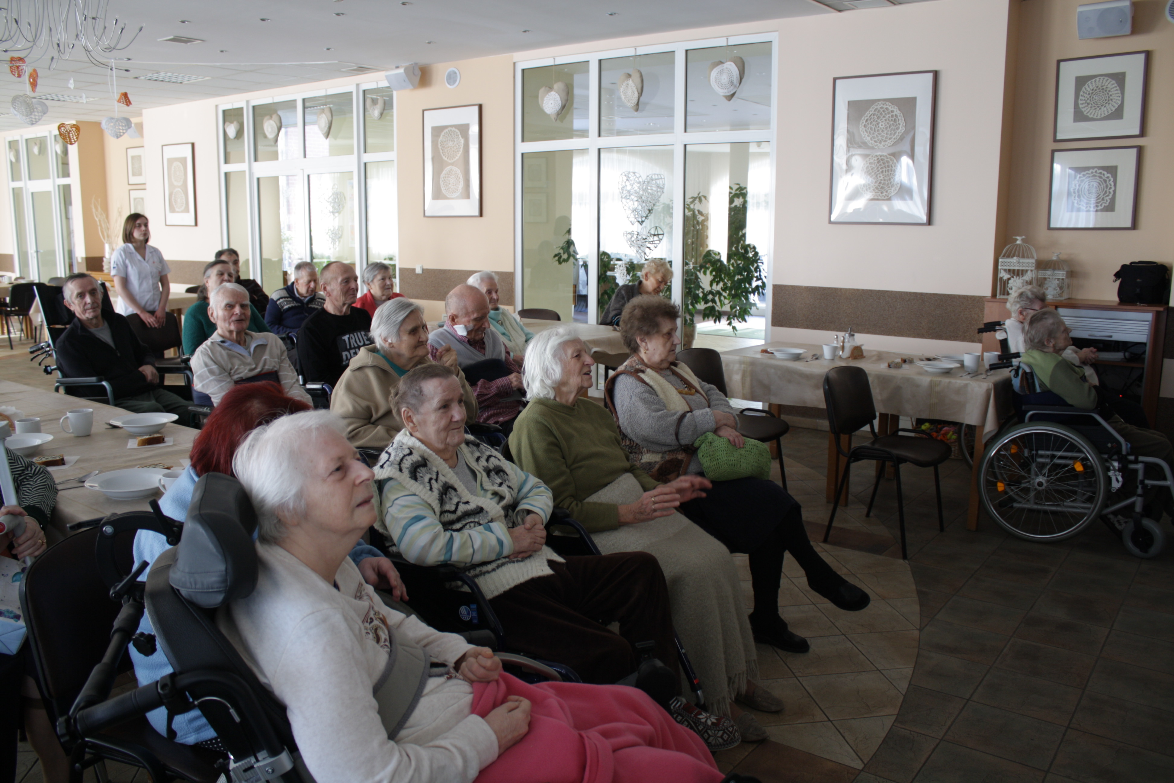 Słowa Janusza Korczaka idealnie odzwierciedlają wczorajszy poniedziałek na Fromborskiej. Otóż grupa przedszkolaków z zaprzyjaźnionego przedszkola „Stokrotka” rozweseliła naszym mieszkańcom, uczestnikom projektu „Kierunek: samodzielność” współfinansowanego ze środków Państwowego Funduszu Rehabilitacji Osób Niepełnosprawnych. Pojawili się u nas, aby zaprezentować wokalne umiejętności. Co zaskakujące, wybrali repertuar, którego naprawdę się nie spodziewaliśmy. Była „Cała sala śpiewa z nami”, „Przybyli ułani pod okienko”, „Hej sokoły” czy „Umówiłem się z nią na dziewiątą” – czyli piosenki, które seniorzy doskonale znają. Bawiliśmy się świetnie! Jesteśmy pod wielkim wrażeniem występu, repertuaru oraz werwy dzieciaków!