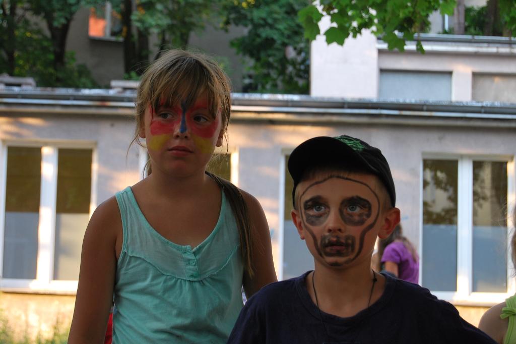 Od kilku godzin na podwórku przed budynkiem Centrum Wsparcia na Jesionowej trwa niecodzienna impreza. Letnie Kino Podwórkowe to akcja zorganizowana przez Polskie Stowrzyszenie Pedagogów i Animatorów KLANZA we współpracy z wychowawcami Centrum Wsparcia. Dzieci, młodzież i rodzice przybyli na Jesionową 6 mogli uczestniczyć w zabawach z chustą, pomalować twarze farbkami, stworzyć piękne bańki mydlane czy wziąć udział w trenigu sztuk walki muay thai, przygotowanym przez instruktorów z Gdańskiego Stowarzyszenia Sztuk Walk (www.gssw.pl). Uczyliśmy się także grać w gumę oraz wspólnie delektowaliśmy słodyczami przygotowanymi przez organizatorów oraz innych miłych darczynców (szczególne podziękowania dla Pani, która upiekła kosz przepysznych słodkich ciasteczek – grzybków). Po szalonych zabawach, na stworzonym z prześcieradeł ekranie oczom wszystkim ukazały się pierwsze minuty Transformersów i poczuliśmy się jak w prawdziwym kinie. Właśnie trwa nasz pierwszy seans filmowy pod chmurką… Informacje o kolejnych podwórkowych imprezach – wkrótce!
