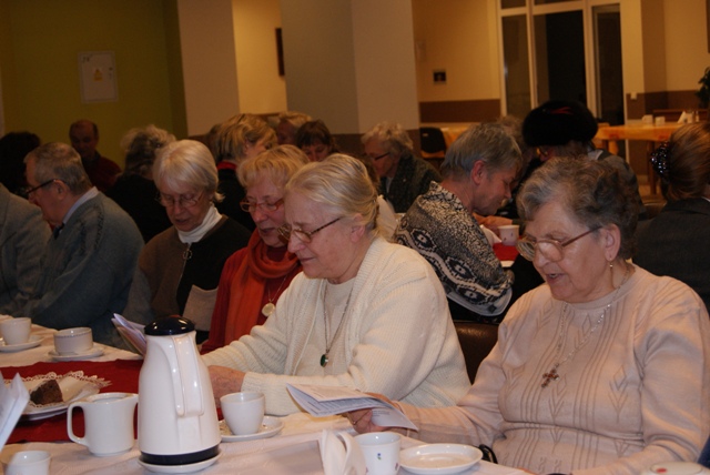 Wczoraj obyło się wyjątkowe spotkanie Parafialnych Zespołów Caritas. Pragnąc przedłużyć czas przeżywania radości Świąt Bożego Narodzenia postanowiliśmy zorganizować wspólne kolędowanie. Skorzystaliśmy przy tej okazji z gościnności Parafii p.w. NMP Królowej Różańca Św., gdzie o godz. 17.00 odprawiona została Msza Św. w intencji Parafialnych Zespołów. Następnie wszyscy razem przeszliśmy do Centrum Pomocowego Caritas im. Jana Pawła II. Tam czekała już na nas kawa, herbata i ciasto oraz Pan Kazimierz z akordeonem 🙂 Zaproszony przez Księdza Piotra chętnie zgodził się akompaniować nam podczas kolędowania – za co bardzo serdecznie mu dziękujemy. W efekcie udało nam się stworzyć całkiem niezły zespół na dwie gitary, akordeon, no i ponad 60 rozśpiewanych gardeł. Było bardzo gwarno i wesoło!
