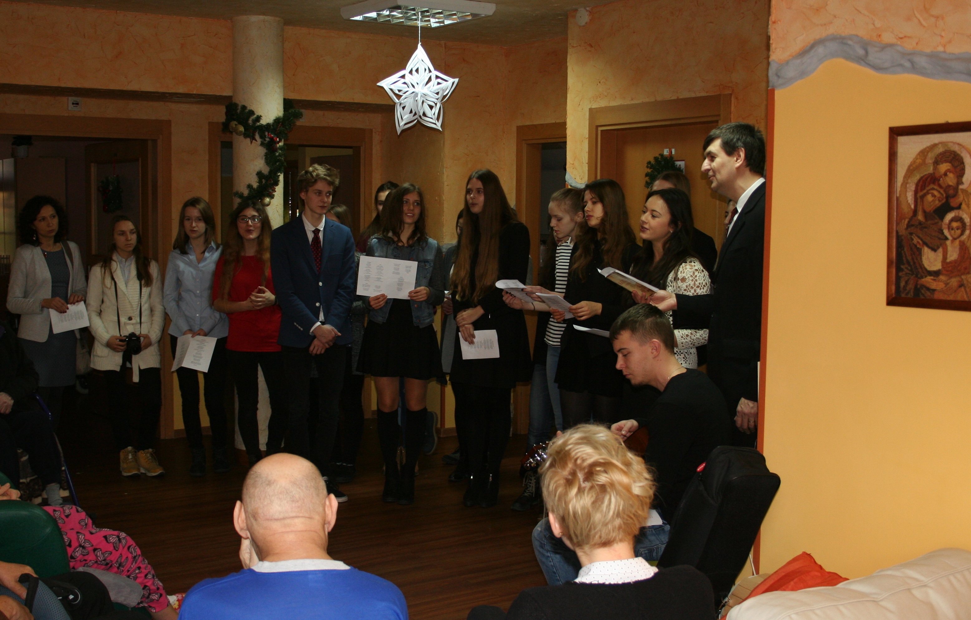 Tradycją jest już, że co roku przed świętami gościmy u siebie wolontariuszy z V Liceum Ogólnokształcącego. Przychodzą do nas z dobrym słowem, by poskładać sobie życzenia, połamać się opłatkiem i pośpiewać piękne polskie kolędy. W tym roku w repertuarze przygotowali również kilka wszystkim dobrze znanych hitów świątecznych (nie tylko w języku polskim). Było nastrojowo, z szerokim uśmiechem, ale również i łzami wzruszenia. Atmosfera świąteczna jak widać udziela się każdemu… 😉