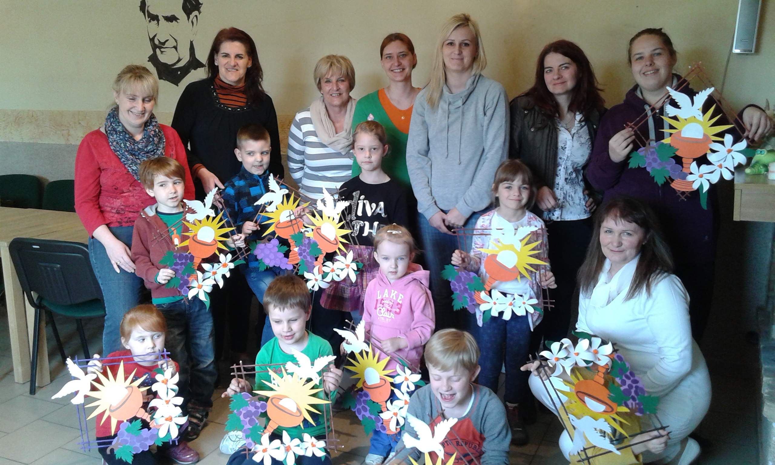 W sobotę 16 kwietnia 2016 r. spotkaliśmy się na Warsztatach Artystycznych w naszej parafii. Tym razem w związku ze zbliżającym się świętem przyjęcia po raz pierwszy Komuni Świętej przez niektóre z dzieci grupa wykonała stroik na komunię Św. lub na Boże Ciało. Do stworzenia tego pięknego stroika wykorzystaliśmy wiklinę papierową, kolorowy papier, farby i klej. Dzieci były pod wielkim wrażeniem że zdołały stworzyć coś tak pięknego. Po wykonaniu pracy plastycznej utrwalaliśmy tańce ewangelizacyjne które wykorzystamy na parafialnym festynie Jana Bosco.