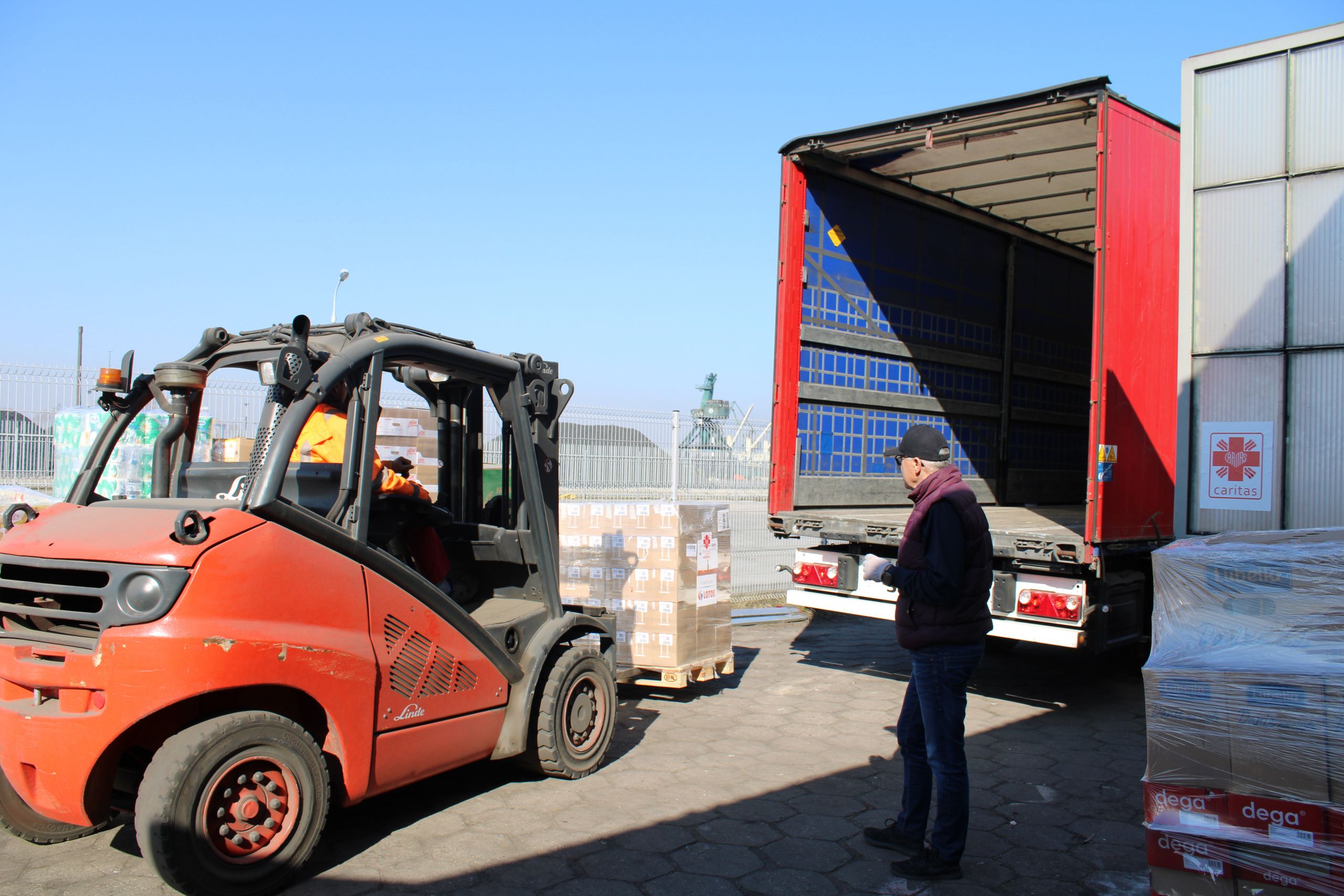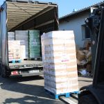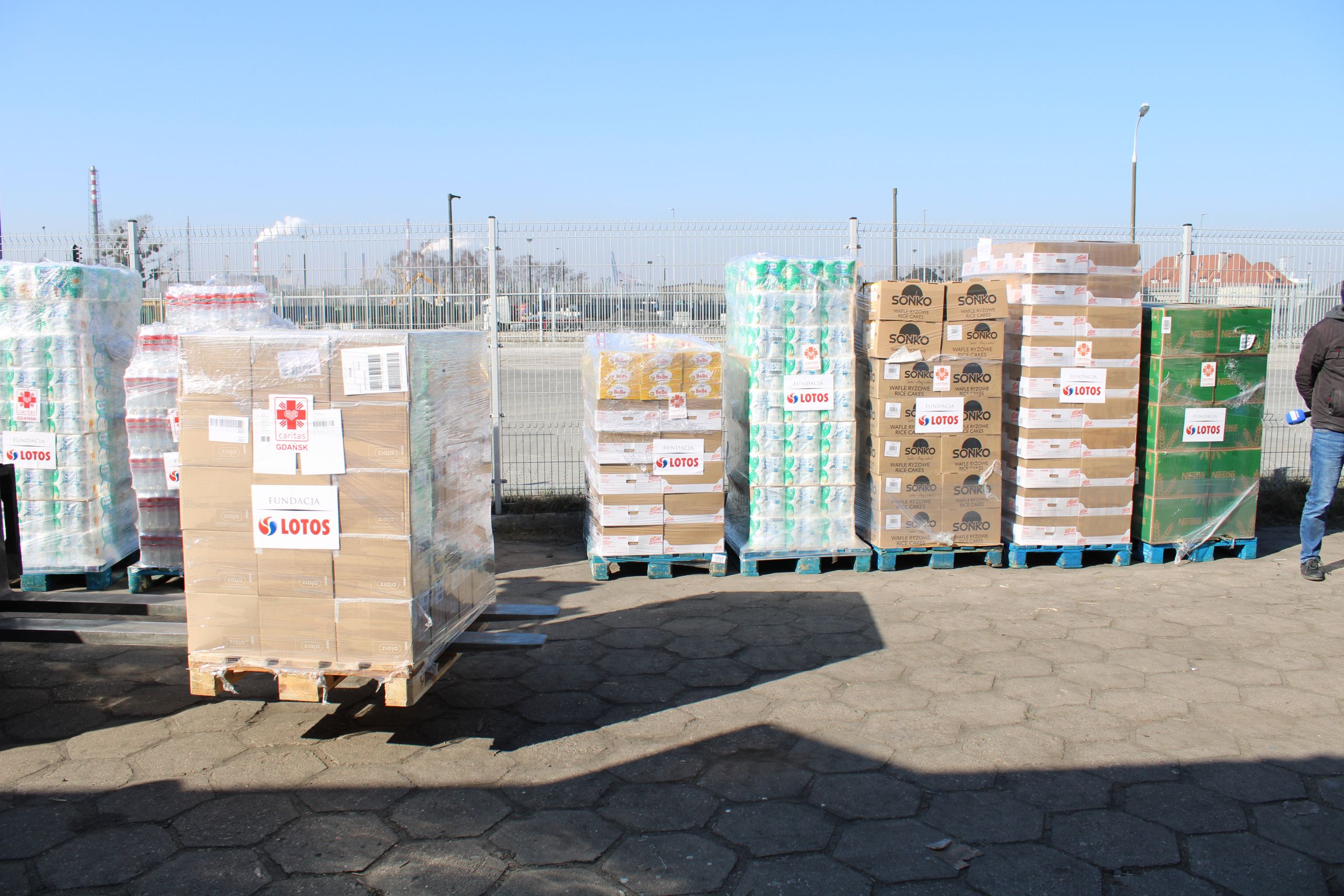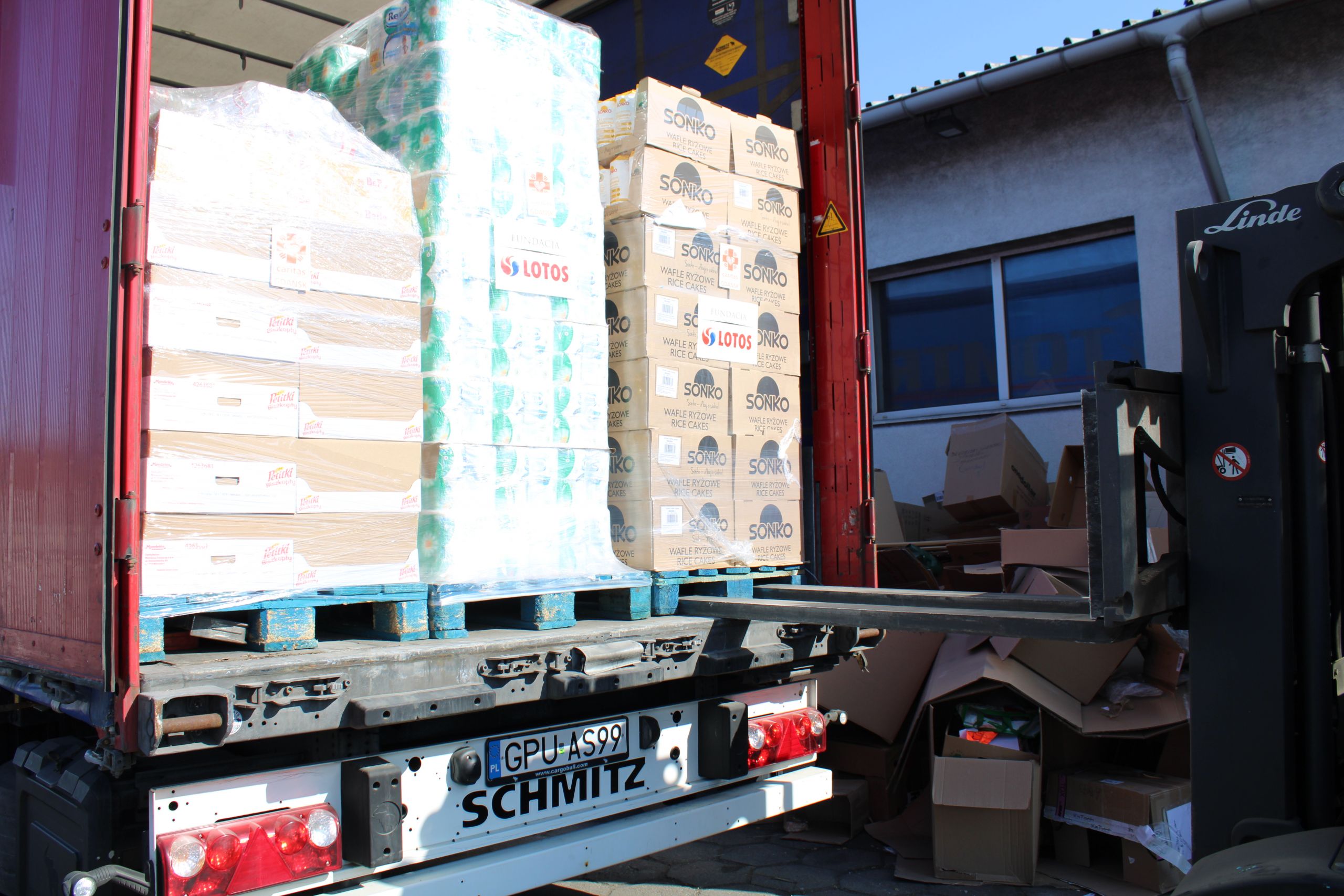 Wysłany transport zawierał przede wszystkim żywność z długim terminem ważności – mleko, olej, mąka, makarony, kasze, ryż, woda, konserwy, a także środki chemii domowej.