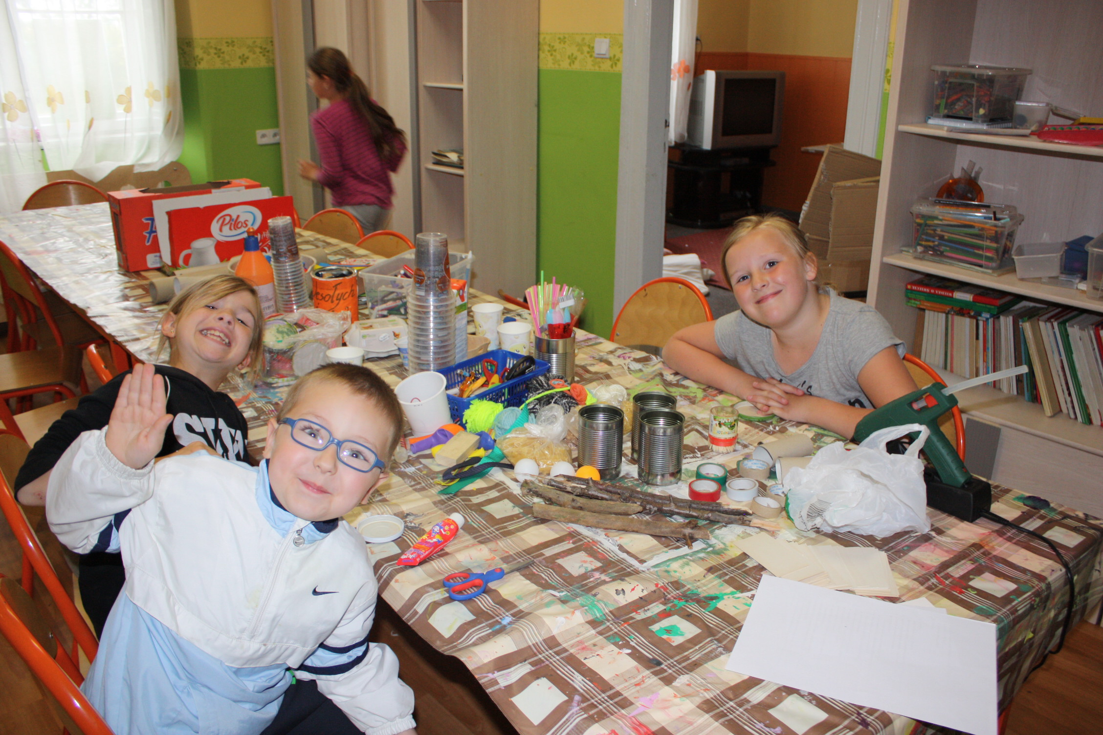 1 lipca odbyły się warsztaty recyklingowe na pierwszym turnusie kolonii w Warzenku. Po części wstępnej spotkania, na której omawialiśmy ideę ponownego przetwarzania śmieci, segregacji, ochrony środowiska, dzieci miały do zrealizowania zadanie grupowe. Dzieci młodsze konstruowały grę/ zabawkę z dostępnych materiałów wtórnych, a dzieci starsze zamieniały się w projektantów mody i projektowały kreację ze śmieci, bądź kostium superbohatera. Powstały piękne, zaplatane skakanki i sznury z worków na śmieci i reklamówek; jedyna w swoim rodzaju gra „memory”; bramki oraz piłka do gry w piłkę nożną; robot, do którego wrzuca się kulki oraz różne kostiumy- od sukni ślubnej, po strój robota. Całość została zaprezentowana na specjalnym pokazie, który wzbudził mnóstwo emocji zarówno wśród osób występujących, jak i wśród widowni.
