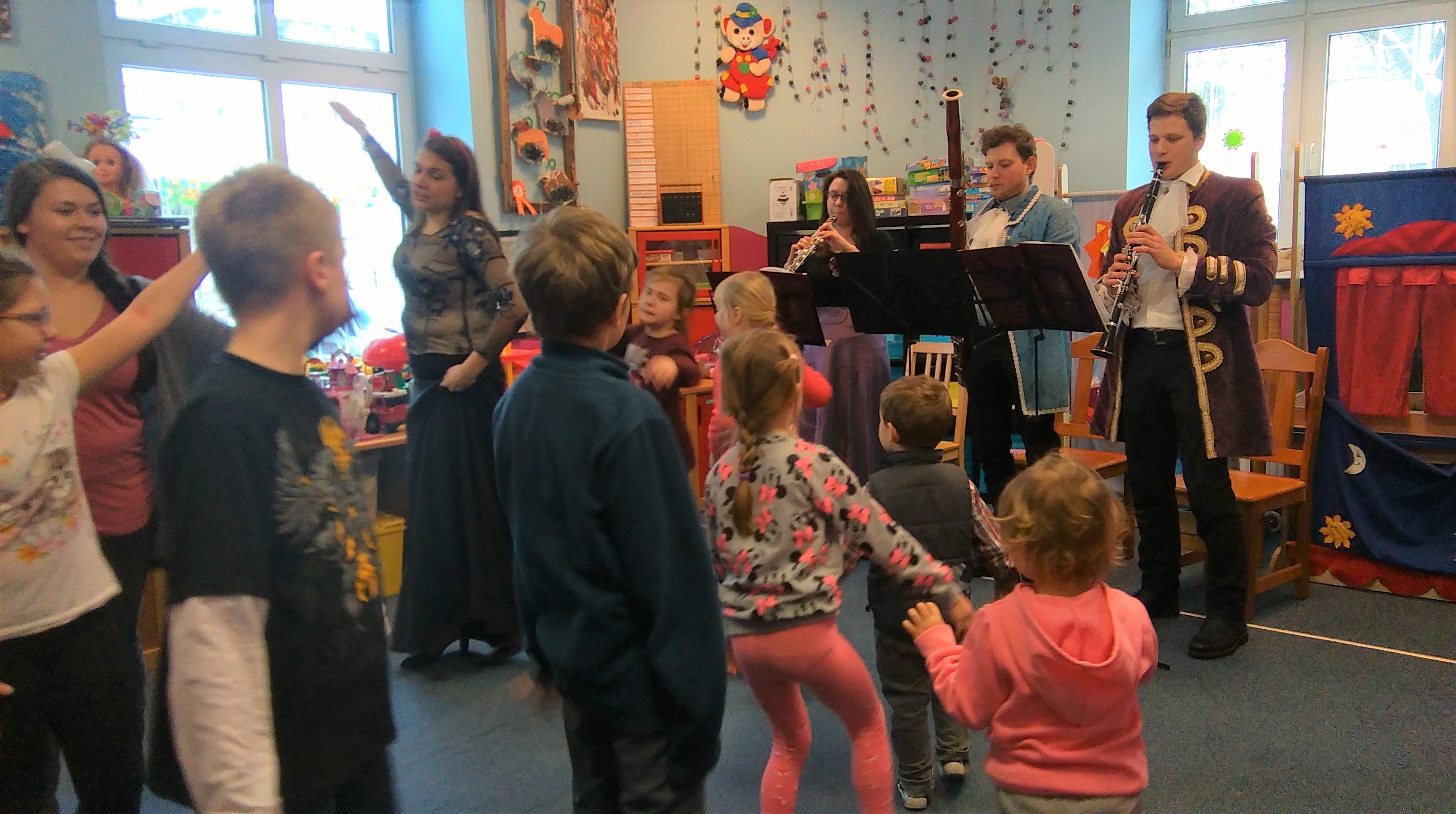 W czasie ferii wychowanków z Centrum Frassati odwiedzili artyści z Agencji Artystycznej Pro Musica. Dzieci z „Anielskiej Krainy” razem z „Krasnalami” wysłuchały bajki „O śpiącej królewnie i karnawałowych zagadkach” a tym samym poznały nowe instrumenty: obój, klarnet i fagot. Bajkowej, muzycznej opowieści jak zwykle towarzyszyła radosna atmosfera.