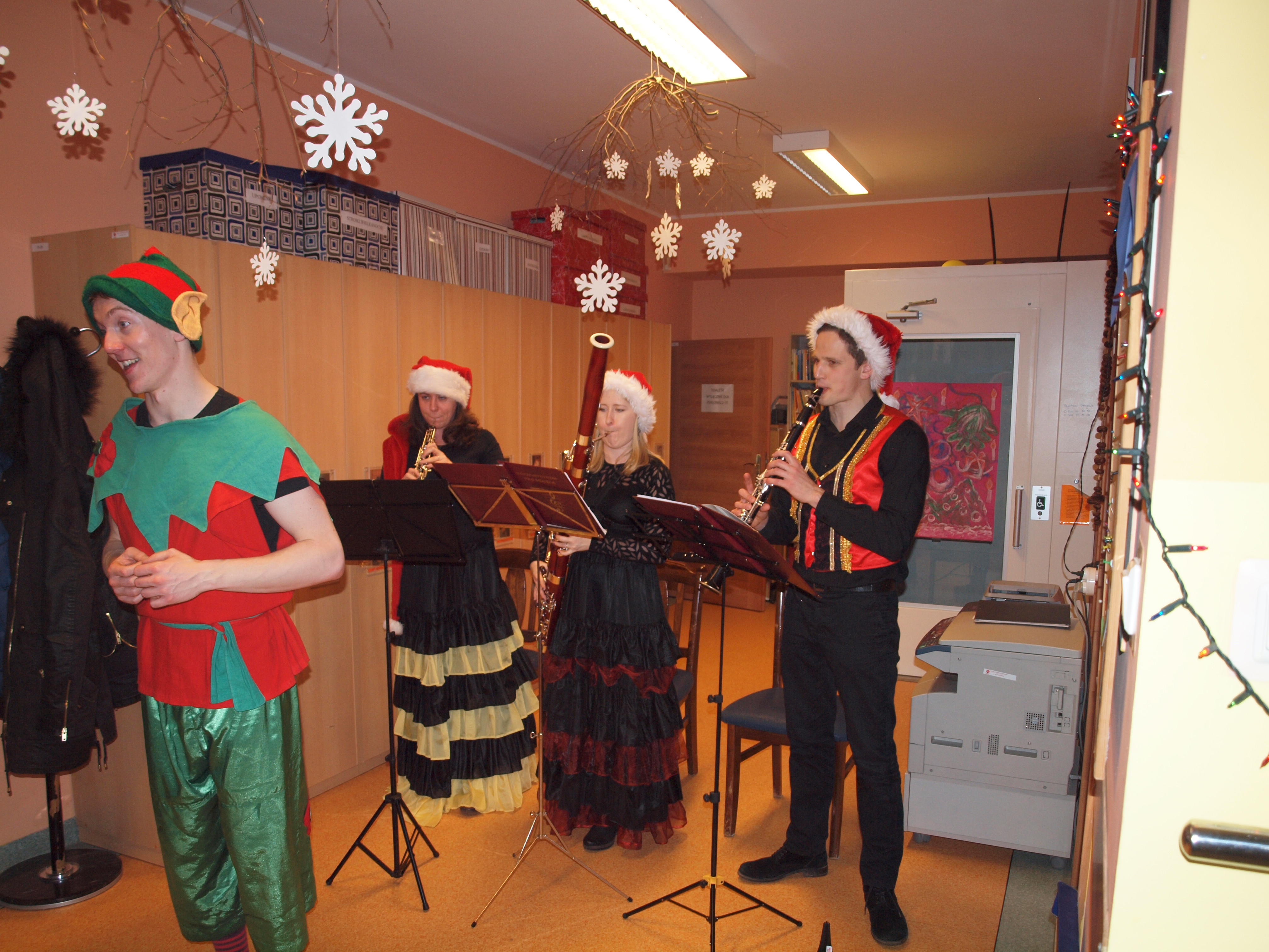 „Baśń o Świętym Mikołaju i magicznej mocy kolęd”- o takim tytule w naszej placówce dnia 11.grudnia 2015 roku, odbył się koncert świąteczny. Mieliśmy możliwość poznania dźwięku oraz wyglądu instrumentów muzycznych; klarnetu, oboju oraz fagotu. Braliśmy udział w aranżacji słowno-muzycznej. Największe wrażenie na naszych podopiecznych zrobiła dźwięczność instrumentów, które wybrzemiewały kolędy oraz pięśni świąteczne.