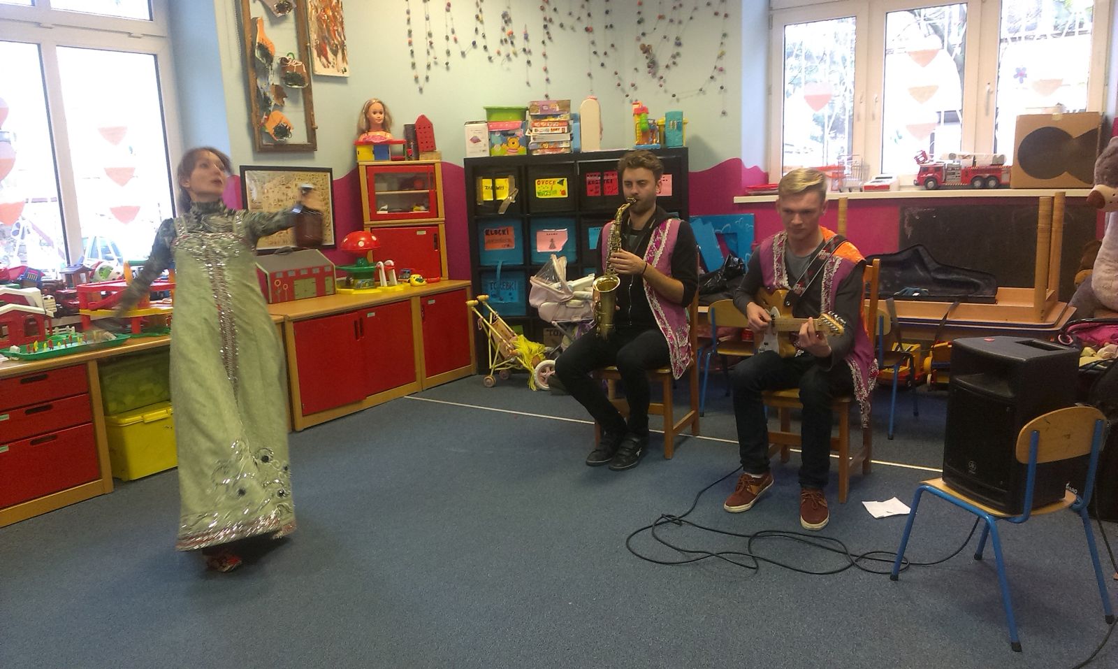 12 listopada dzieci z grupy „Radosne Krasnale” wysłuchały bajkowego koncertu pt. „Bajeczne przygody Wodnika Wędrownika”. Tym razem kolorowo ubrani artyści z Agencji Artystycznej „Pro Musica” opowiadali bajkę, której towarzyszyła muzyka saksofonu oraz gitary elektrycznej. Nasi podopieczni mają możliwość cieszyć się przedstawieniami, rozwijać swoją wrażliwość na muzykę i poznawać nowe instrumenty dzięki projektowi „MUZYCZNY ROZWÓJ”.