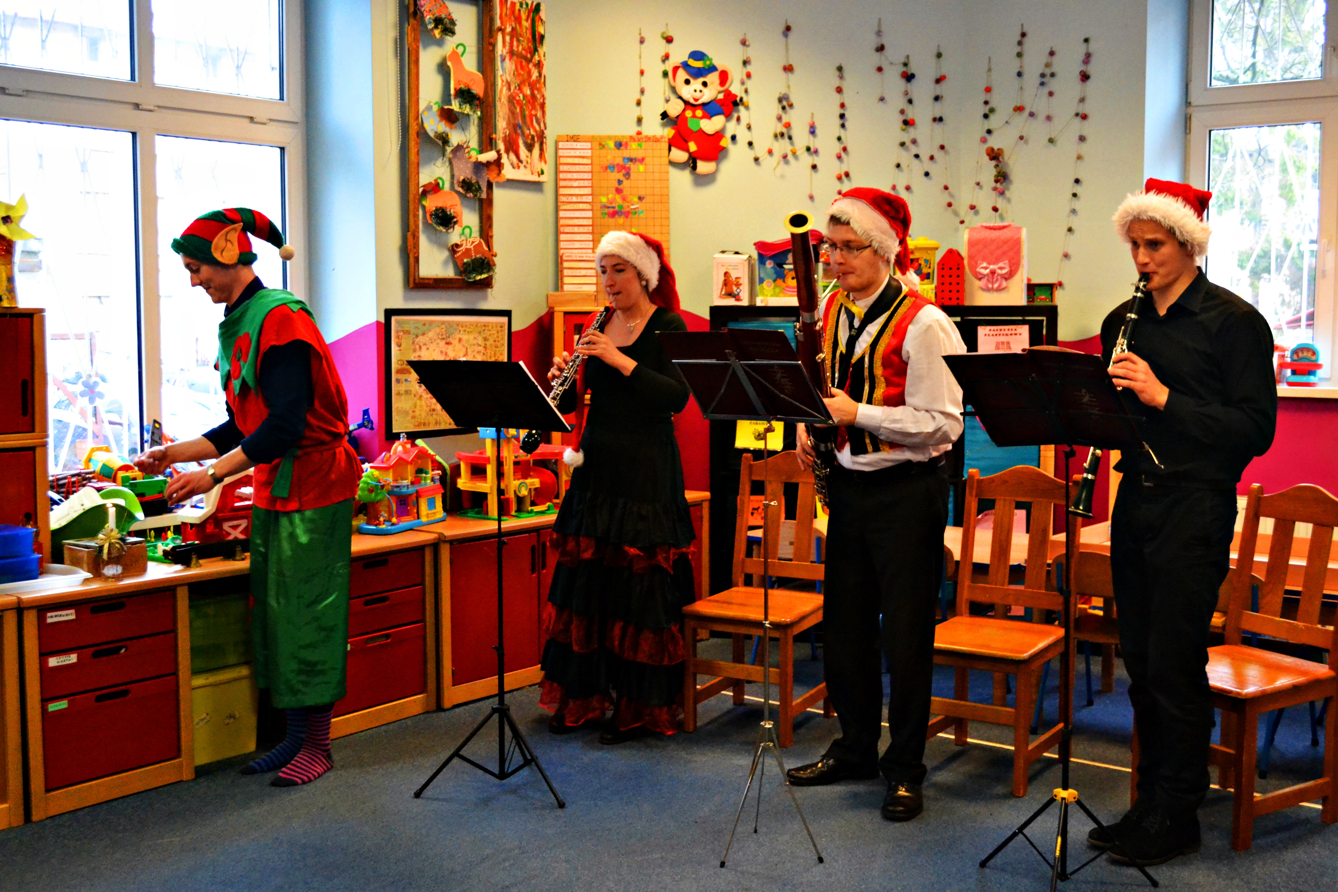 W tym tygodniu odwiedzili nas artyści z grupy muzycznej „Pro-musica” z koncertami „Baśń o Świętym Mikołaju i magicznej mocy kolęd” oraz „Karnawał w szkocką kratę”. Koncertom towarzyszyły niezwykłe opowieści, wspólna zabawa i tańce. Wszystko to odbywało się przy akompaniamencie instrumentów: oboju, klarnetu, fagotu, skrzypiec, altówki i wiolonczeli.