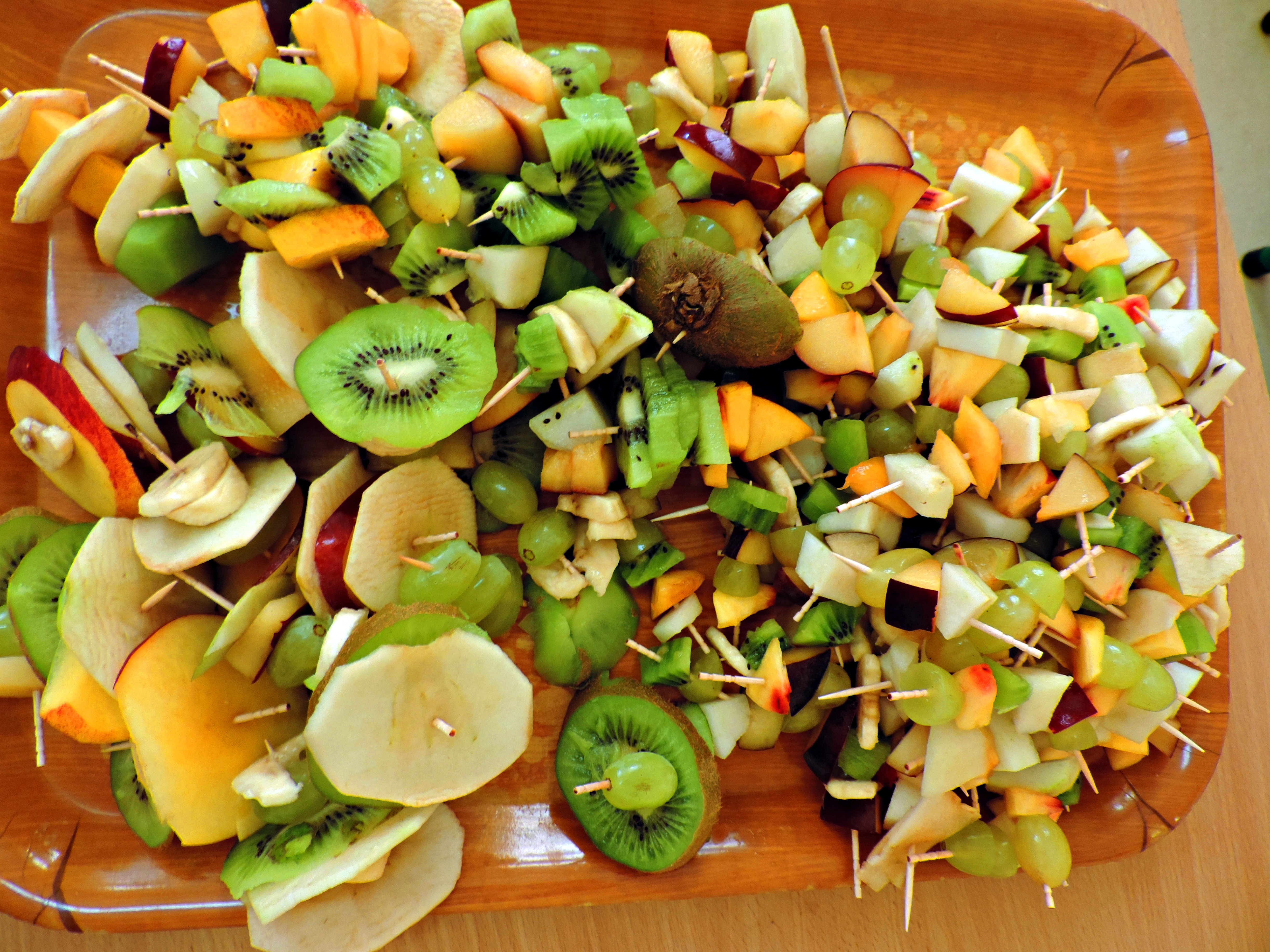 Nasze zdrowe wrześniowe odżywianie nadal trwa. Na deser przygotowaliśmy sobie koreczki owocowe. Do dyspozycji mieliśmy jabłka, banany, winogrona, brzoskwinie, gruszki, śliwki. A wszystko to świeże, pyszne i pełne witamin.
