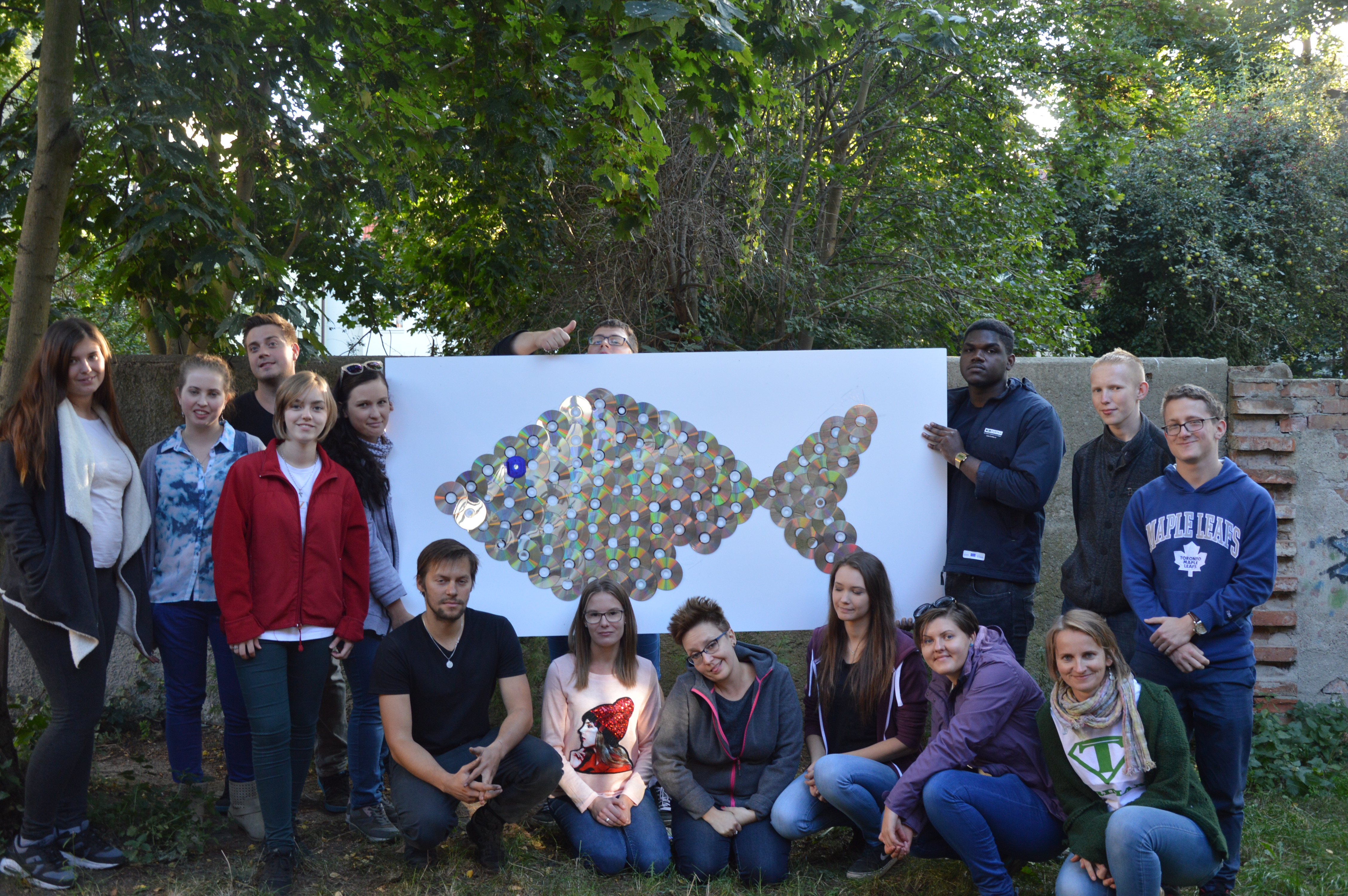 Wczoraj zakończyliśmy pierwszy etap tworzenia naszego Kosmicznego Muru – wyklleiliśmy naszą rybę z płyt CD, która ma na imię Hanka.