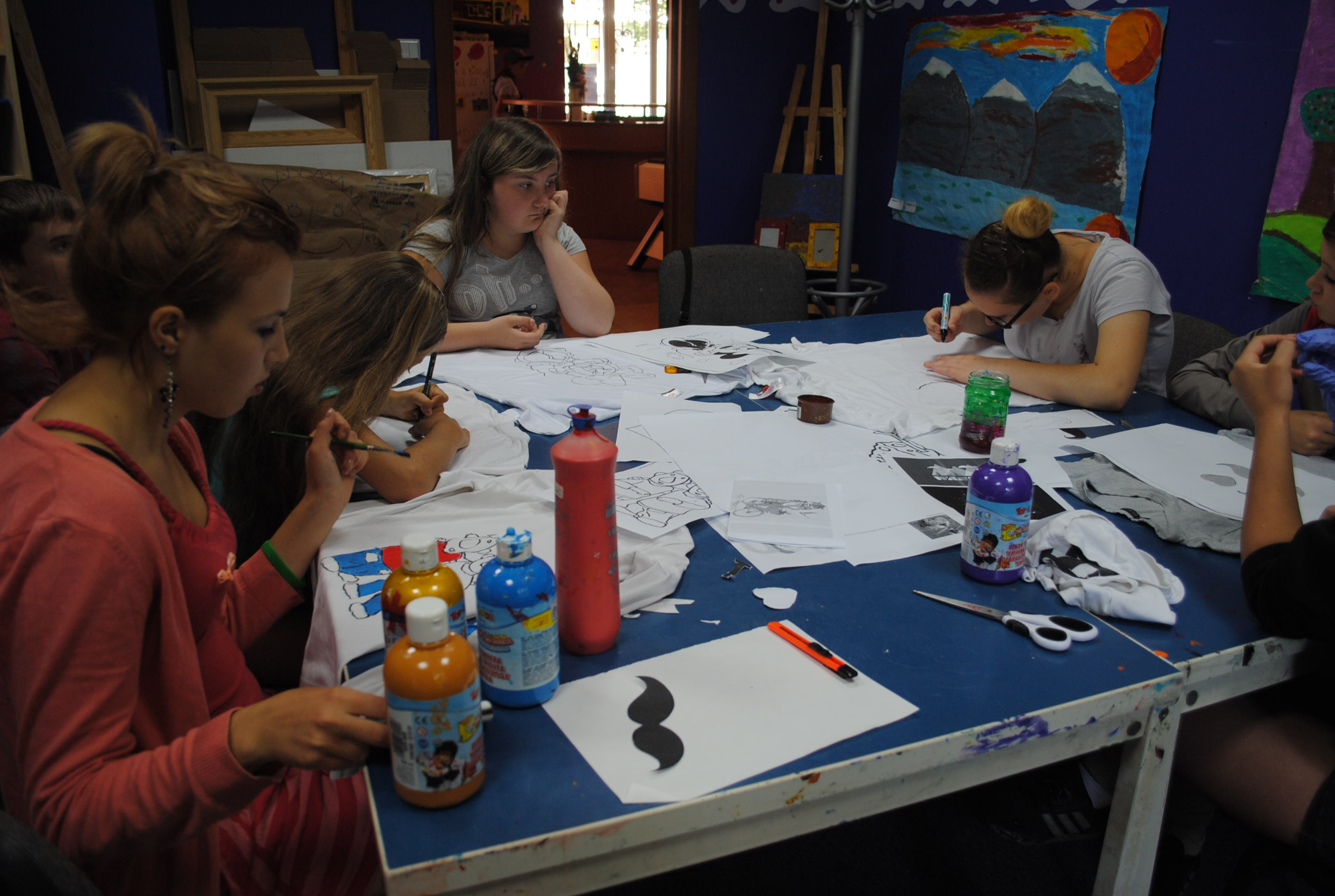 18 lipca młodzieżowa grupa „Sparta” tworzyła niezwykłe obrazy na swoich koszulkach! Wszyscy zostali poproszeni o przyniesienie t-shirtów w jasnych kolorach, na których miały zostać namalowane ich szalone pomysły. Prawie każdy wiedział, co chce namalować, więc wszyscy od razu zabrali się do pracy. Efekty przeszły nasze najśmielsze oczekiwania, gdyż udało się stworzyć prawdziwe dzieła sztuki! Ulubieni bohaterowie z bajek z czasów dzieciństwa, a także ci, którzy wciąż nas bawią – znaleźli się na koszulkach. Nie zabrakło również najmodniejszych w tym sezonie „wąsów”. Każdy stworzył na swojej koszulce dzieło, z którego był dumny. Wszyscy nie mogli się również doczekać momentu, aż zaprezentują się w stworzonej przez siebie grafice.