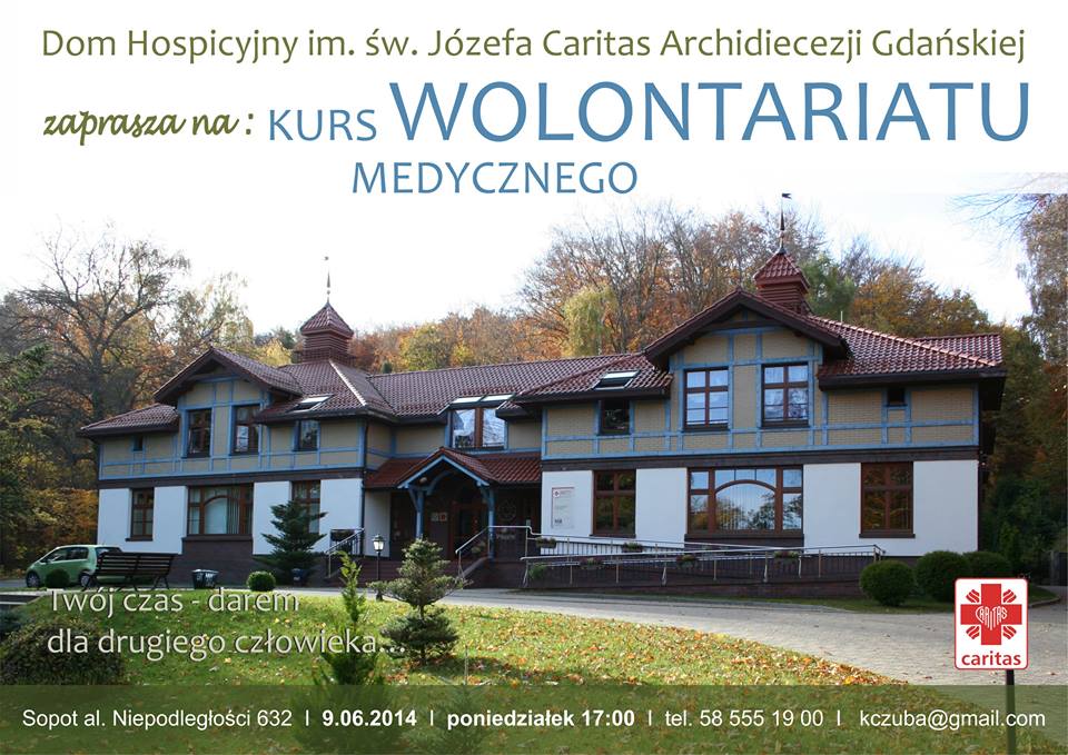 Serdecznie zapraszamy na kolejną edycję kursu wolontariatu hospicyjnego. Pierwsze spotkanie odbędzie się w poniedziałek 9 czerwca o godz. 17 w Domu Hospicyjnym Caritas im. św. Józefa w Sopocie przy Al. Niepodległości 632.