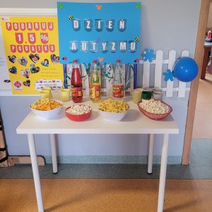 Kolorem przypisanym do autyzmu jest niebieski. W związku z tym, podopieczni i pracownicy tego dnia byli ubrani na niebiesko, skosztowaliśmy pysznego, niebieskiego ciasta oraz placówka była przyozdobiona niebieskimi balonami.