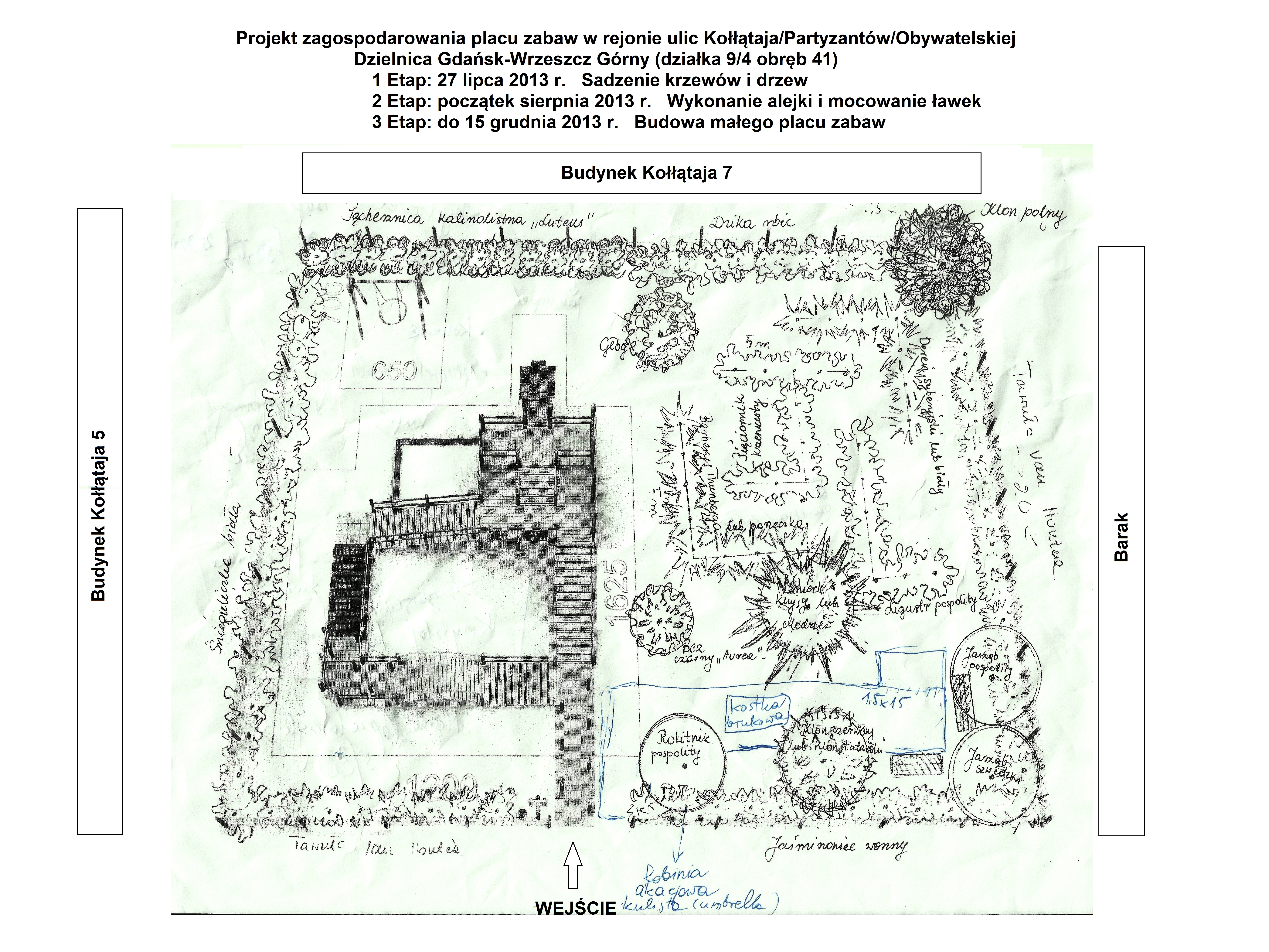 W załączniku posyłam ostateczny plan zagospodarowania dostarczony przez inicjatora akcji pana Macieja – mieszkańca dzielnicy oraz zdjęcia jak wygląda obecnie plac.