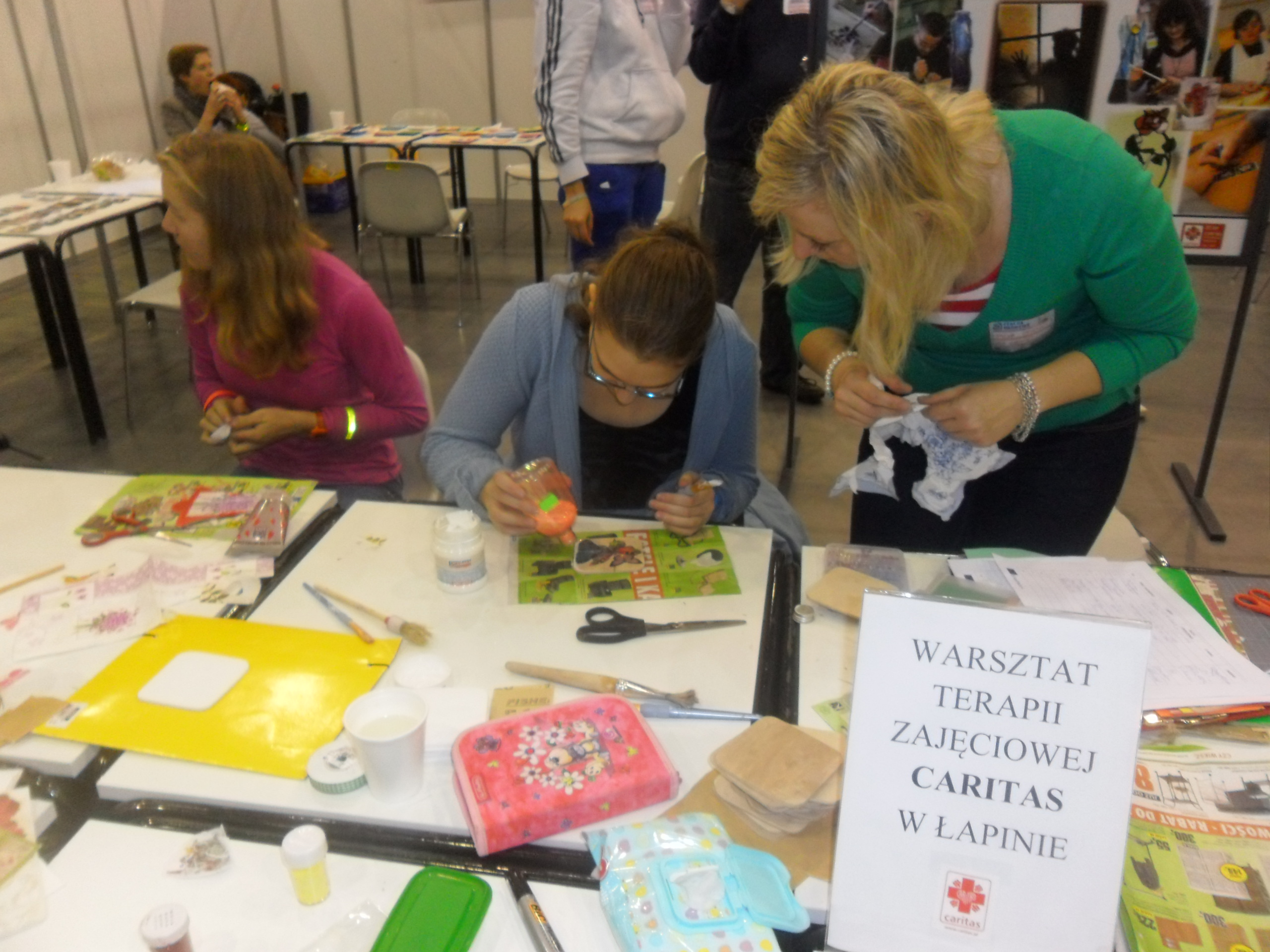 Grupa uczestników WTZ z Łapina pod kierunkiem terapeutów p. Basi i p. Marleny, brała udział w Targach „Czas na Młodzież”. Targi odbyły się w dniach 23 i 24 października b.r. w budynku AmberExpo. Podczas targów nasi podopieczni prowadzili warsztaty decoupage oraz wyrób kartek okolicznościowych. Warsztaty skierowane były dla uczniów szkół gimnazjalnej i ponad gimnazjalnej.