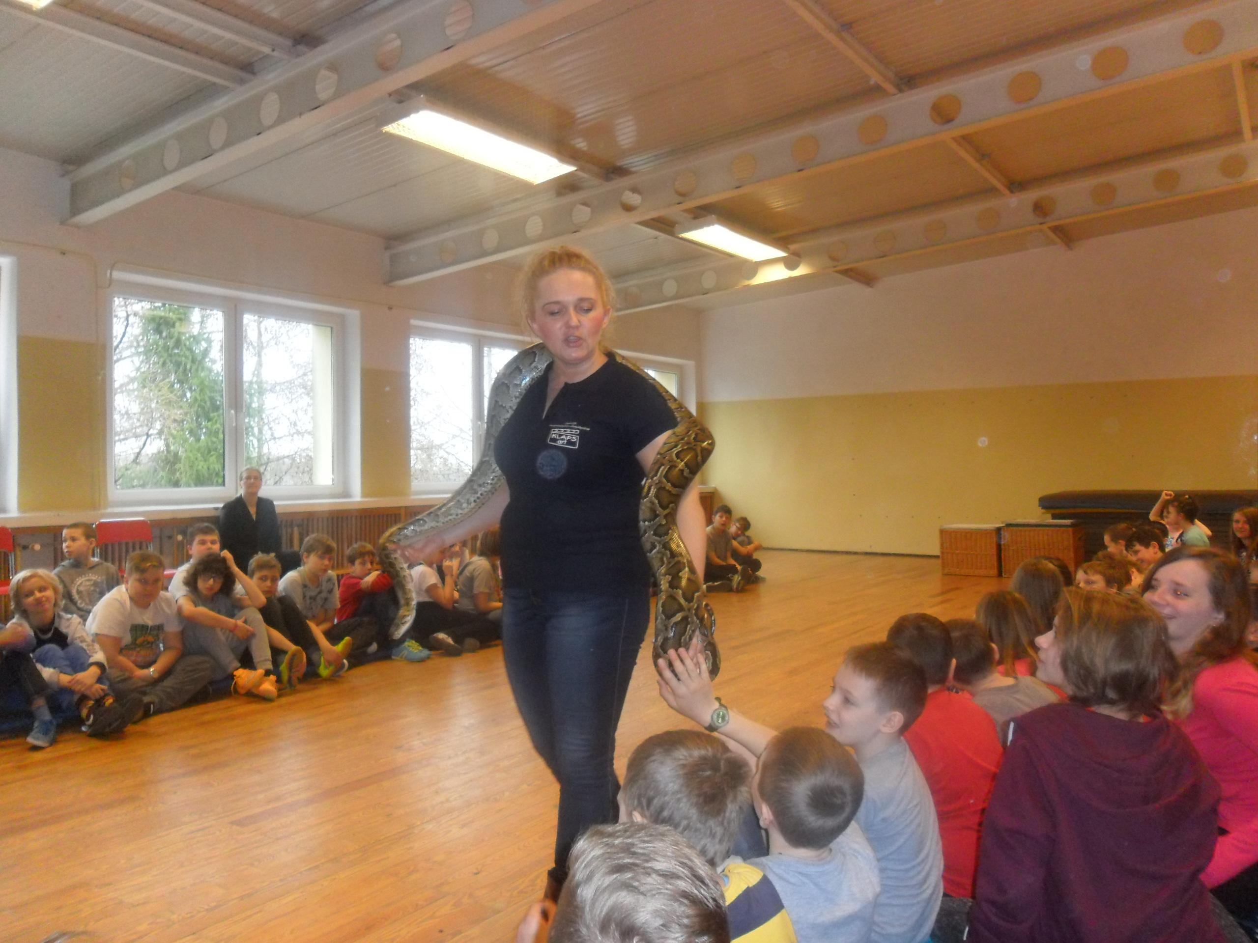 Dnia 11.03.2015 zostaliśmy zaproszeni do Szkoły Podstawowej i Gimnazjum w Kolbudach na wspólną lekcję biologii. Zajęcia dotyczyły gadów, a dokładniej węży. Zazwyczaj zwierzęta te budzą obawy, a wręcz wydają się niebezpieczne. Te, które mieliśmy okazję obejrzeć z bliska nie były jadowite, były to dusiciele. Duże okazy były bardzo przyjazne, z bliska już nie takie straszne. Każdy mógł dotknąć, pogłaskać i przyjrzeć się gadom. Nasza wiedza została wzbogacona o nowe informacje, a strach przed wężami nieco zmalał. Fajne są takie lekcje 🙂