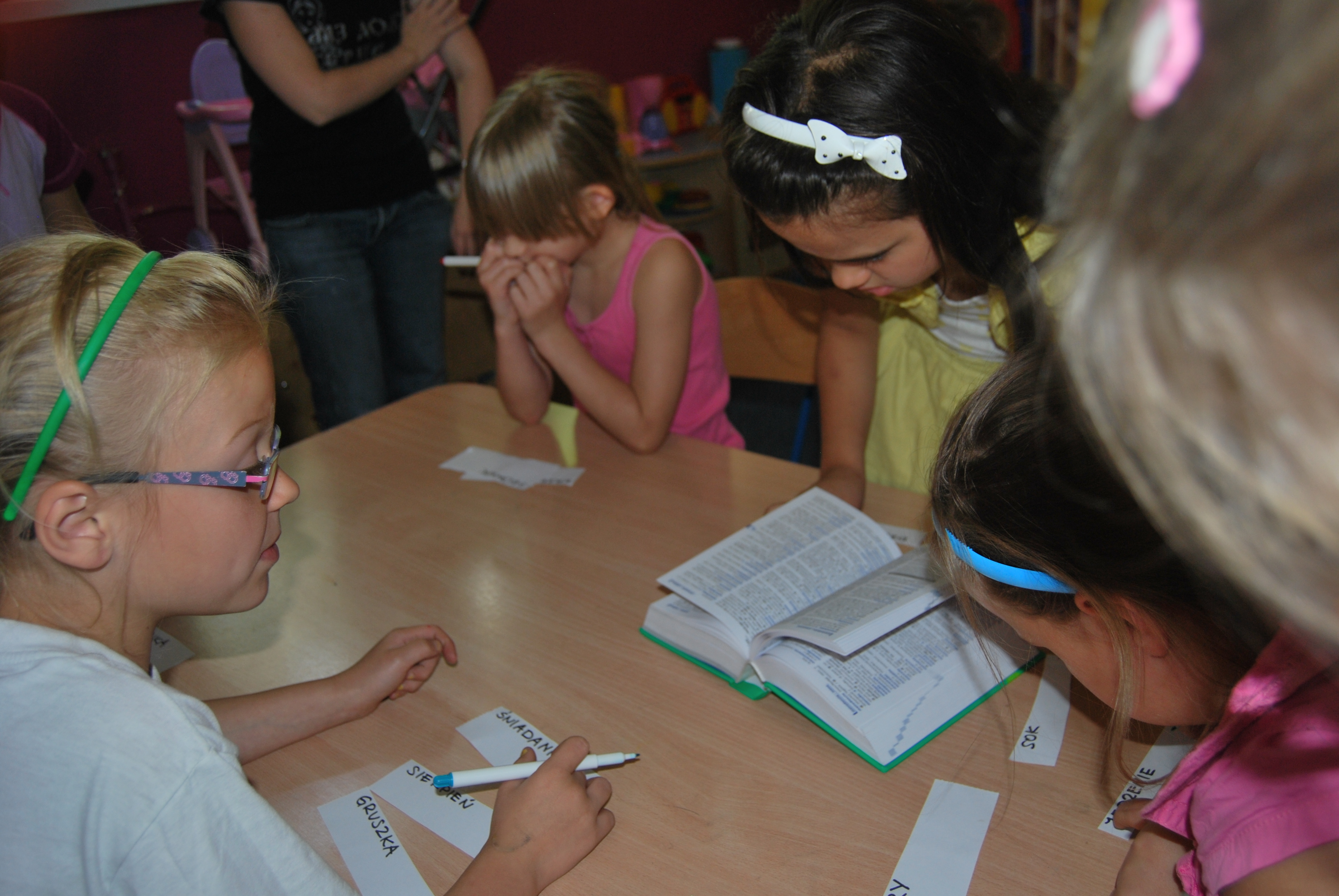 23 sierpnia miały miejsce długo oczekiwane zajęcia z naszą nową wolontariuszką z Hiszpanii – Isabel. Były to pierwsze zajęcia Isabel odkąd przebywa w naszej placówce. Rozpoczęliśmy od nauki języka hiszpańskiego. Powycinaliśmy szerokie paski z kartek papieru, a następnie napisaliśmy na nich słowa po polsku, które wraz z Isabel i z pomocą słownika przetłumaczyliśmy. Po wyczerpującej nauce przyszedł czas na niespodziankę. Isabel przygotowała dla dzieci kisiel malinowy, który udekorowała kolorowymi żelkami o różnych kształtach. Była to nagroda za naszą pracę. Cały dzień z Isabel był bardzo wesoły i niecierpliwie czekamy na jej kolejne pomysły.